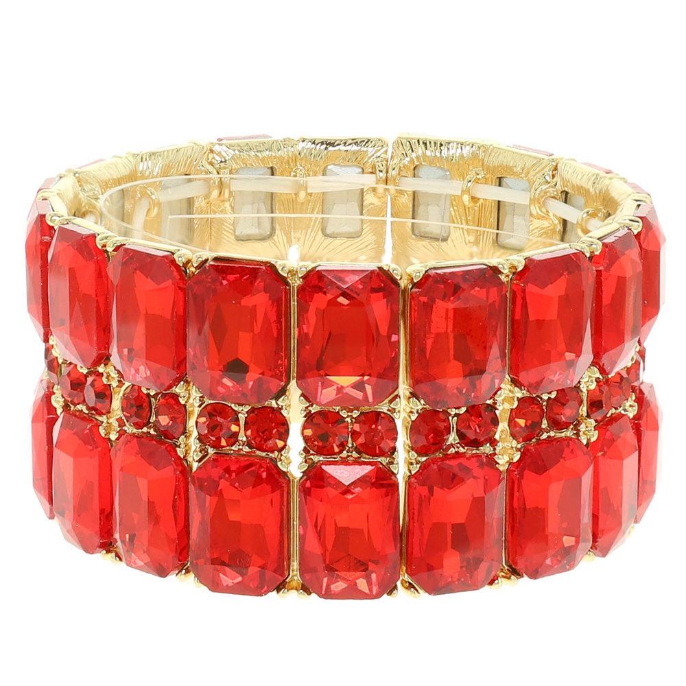 MULTI-ROW BAGUETTE CUT CRYSTAL EMBELLISHED STRETCH BRACELET