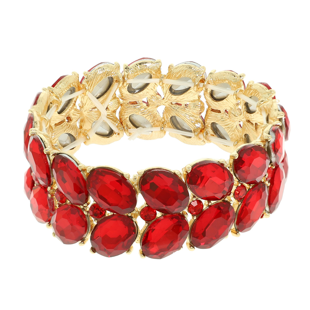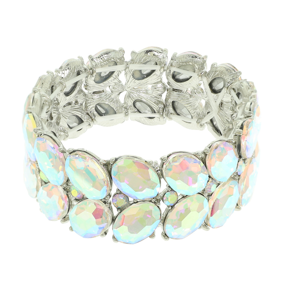 DUAL-ROW CHUNKY OVAL CUT CRYSTAL EMBELLISHED STRETCH BRACELET