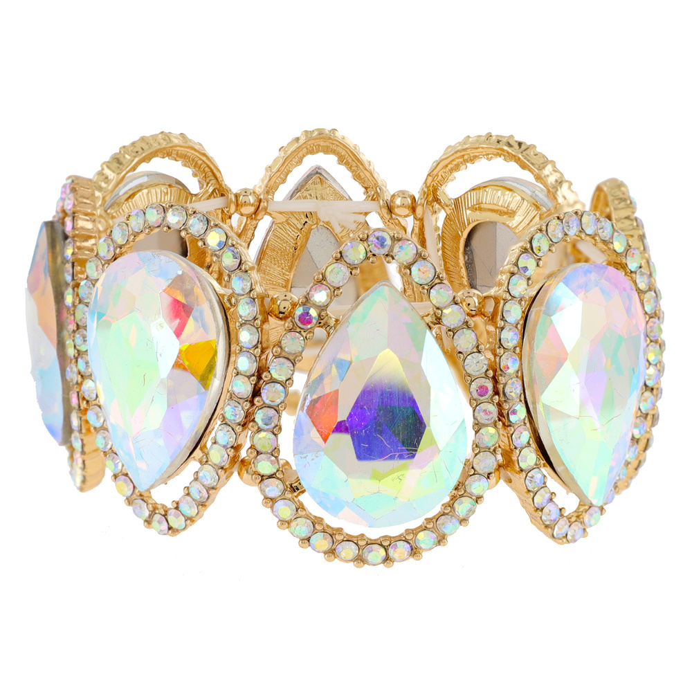 Evening Teardrop Halo Crystal Stretch Bangle Bracelet