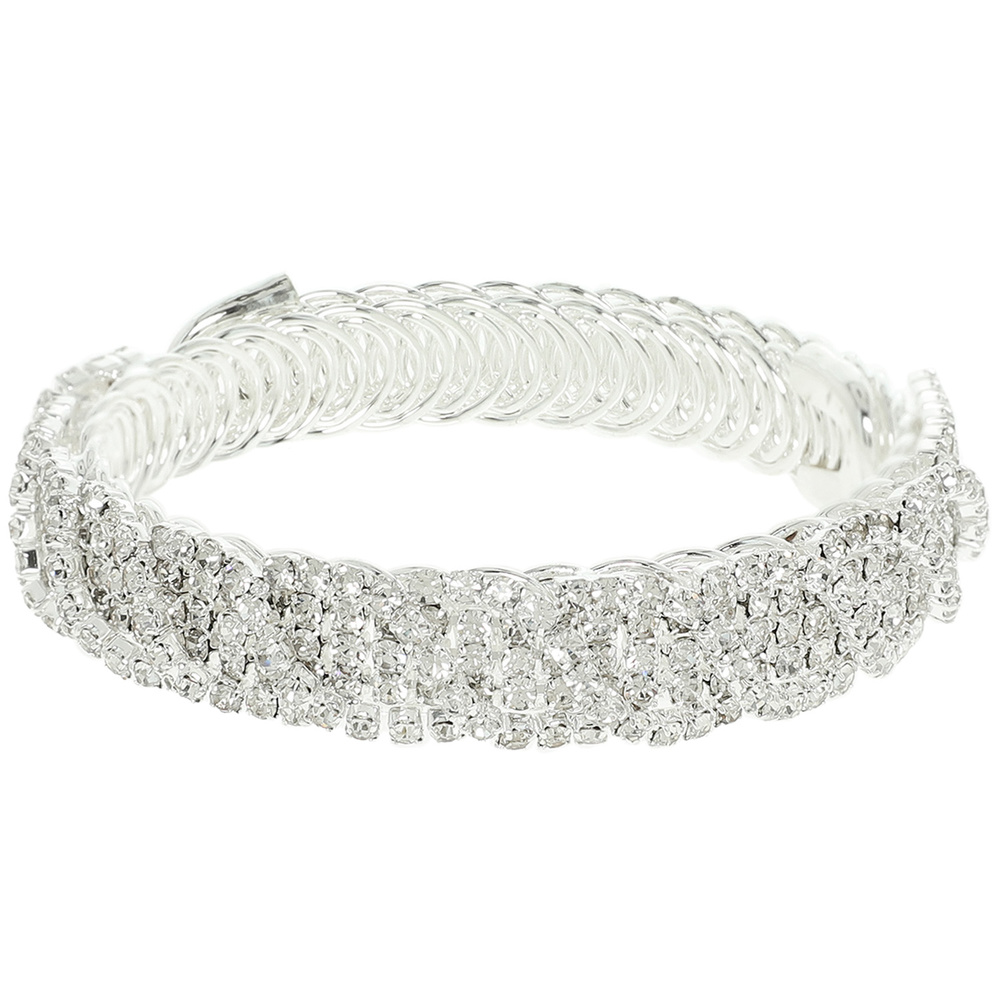 CRYSTAL RHINESTONE EMBELLISHED BANGLE BRACELET IN SILVER-TONE METAL
