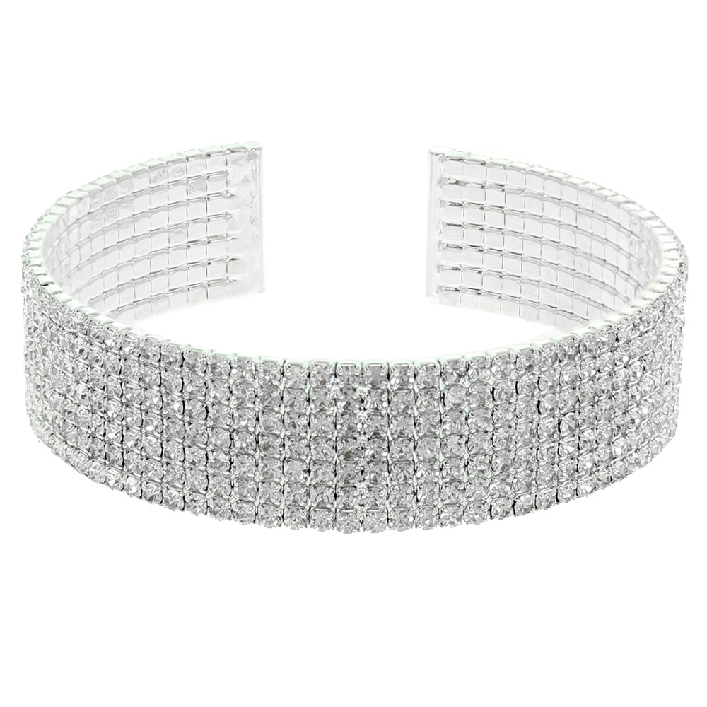 MULTI-LINE CRYSTAL RHINESTONE PAVE CUFF BRACELET IN SILVER-TONE METAL