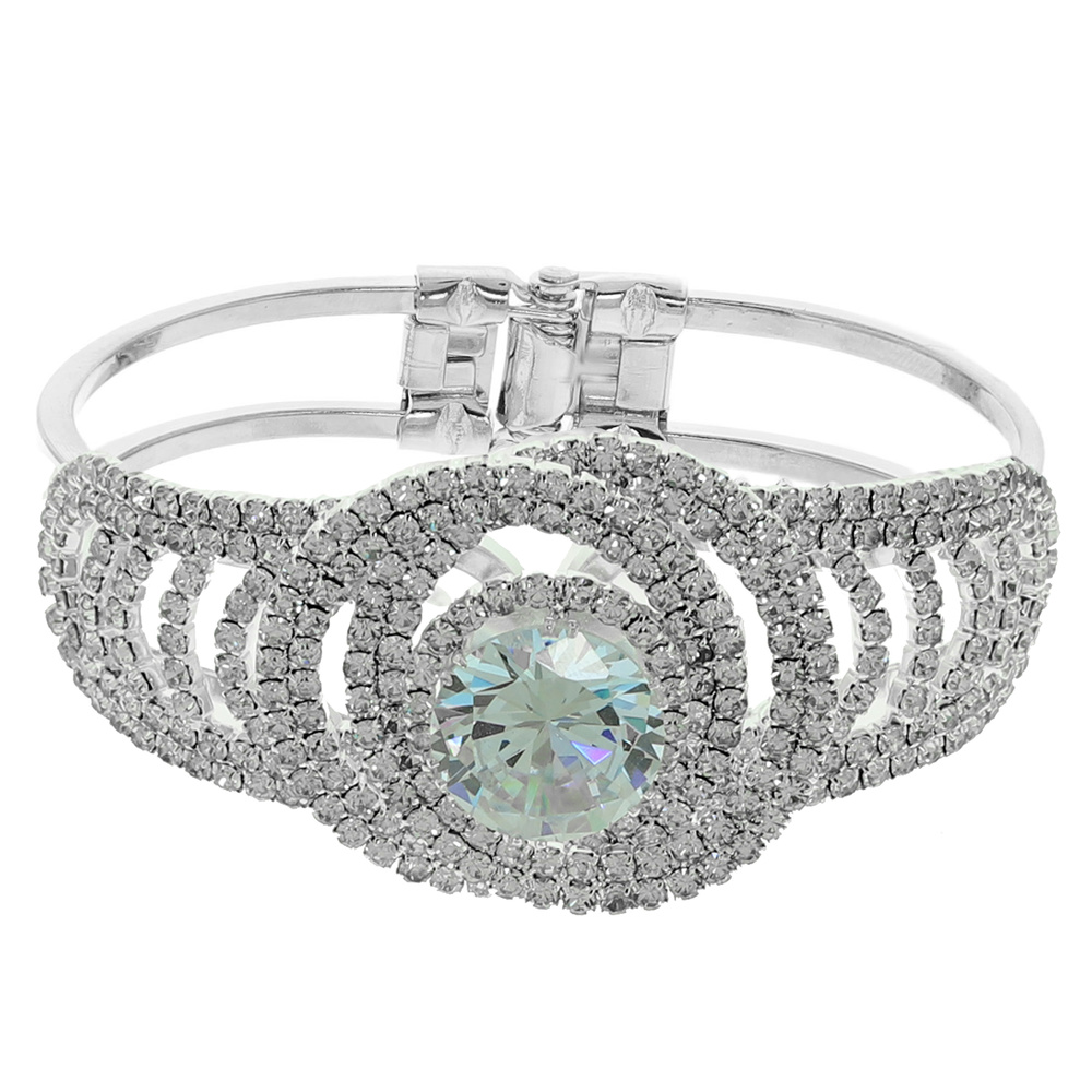 RHINESTONE ROUND-OUT CRYSTAL EMBELLISHED HINGED BANGLE BRACELET