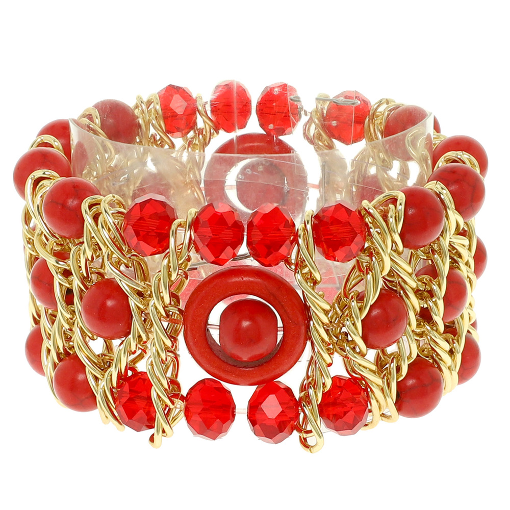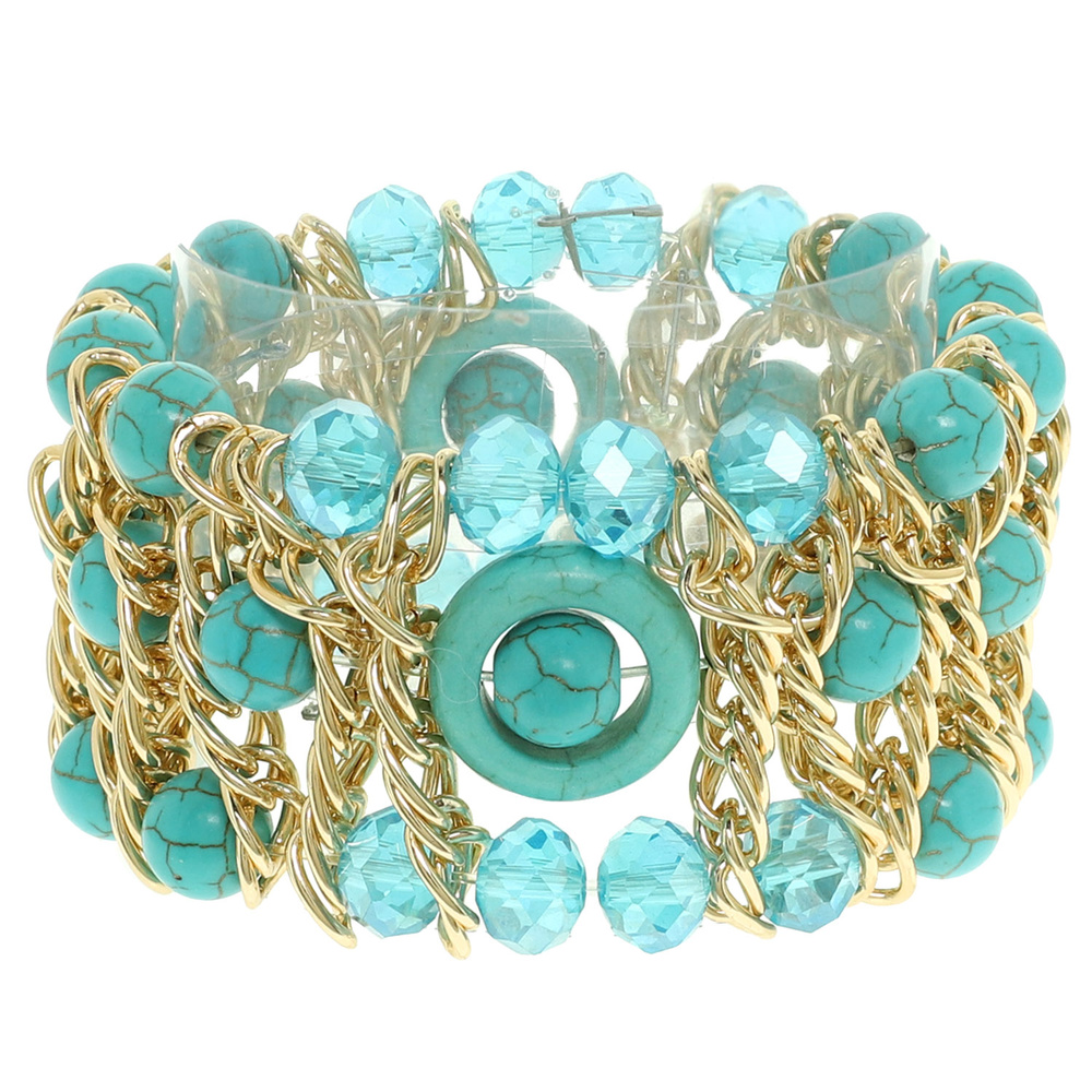 MULTICOLOR STONE BEADED AND CHAIN LINK STRETCH BRACELET
