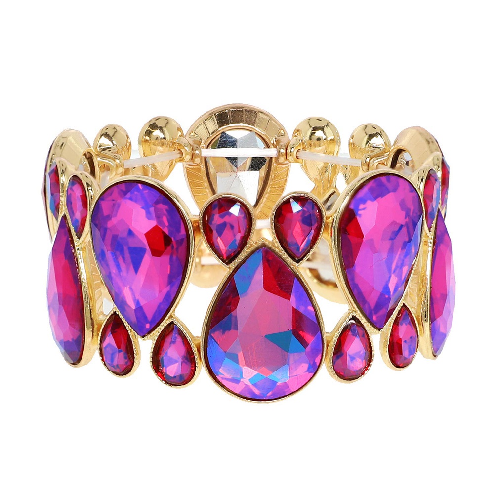 Crystal Rhinestone Teardrop Cluster Stretch Bangle Bracelet