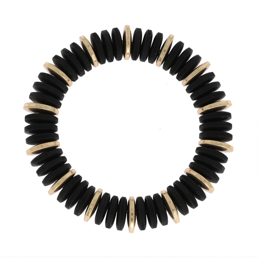 Boho Style Natural Wood Disc Beaded Stackable Stretch Bracelet