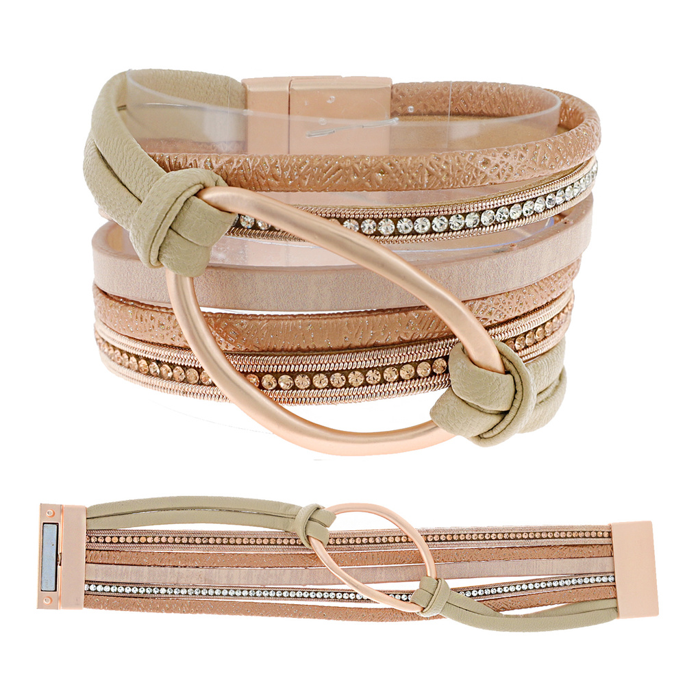 Bohemian Faux Leather Multi-strand Crystal Rhinestone Cord Loop Bracelet With Magnetic Closure