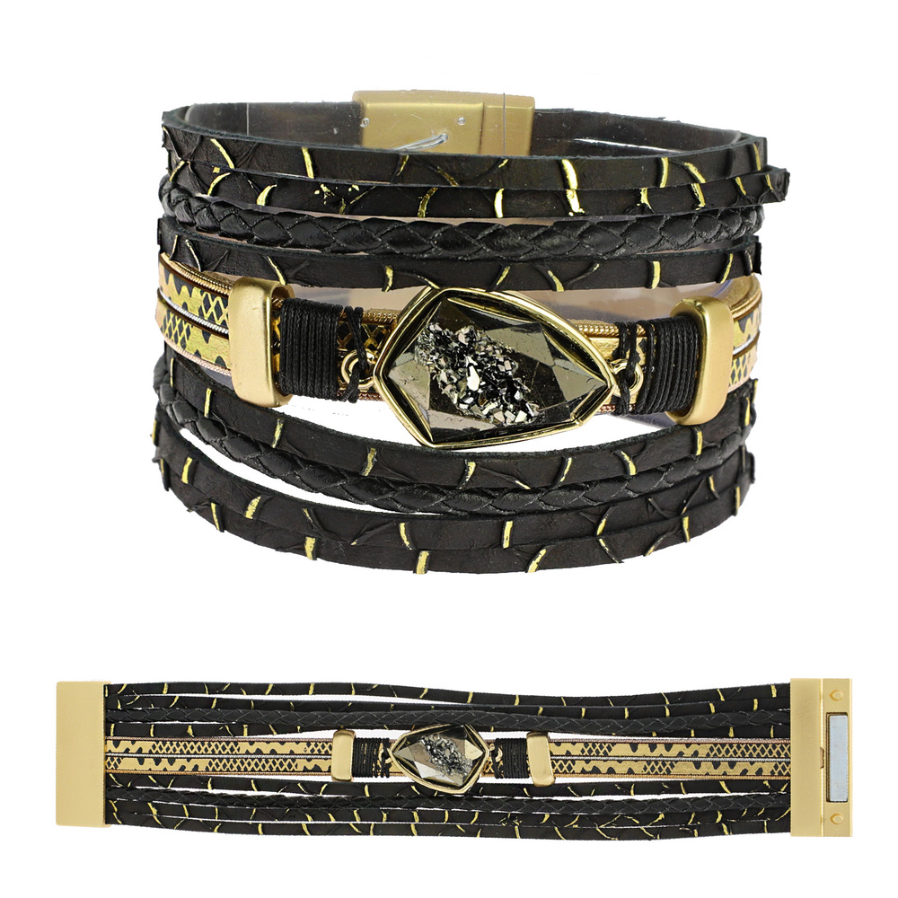 BOHEMIAN MULTI-STRAND STONE MAGNETIC FAUX LEATHER BRACELET