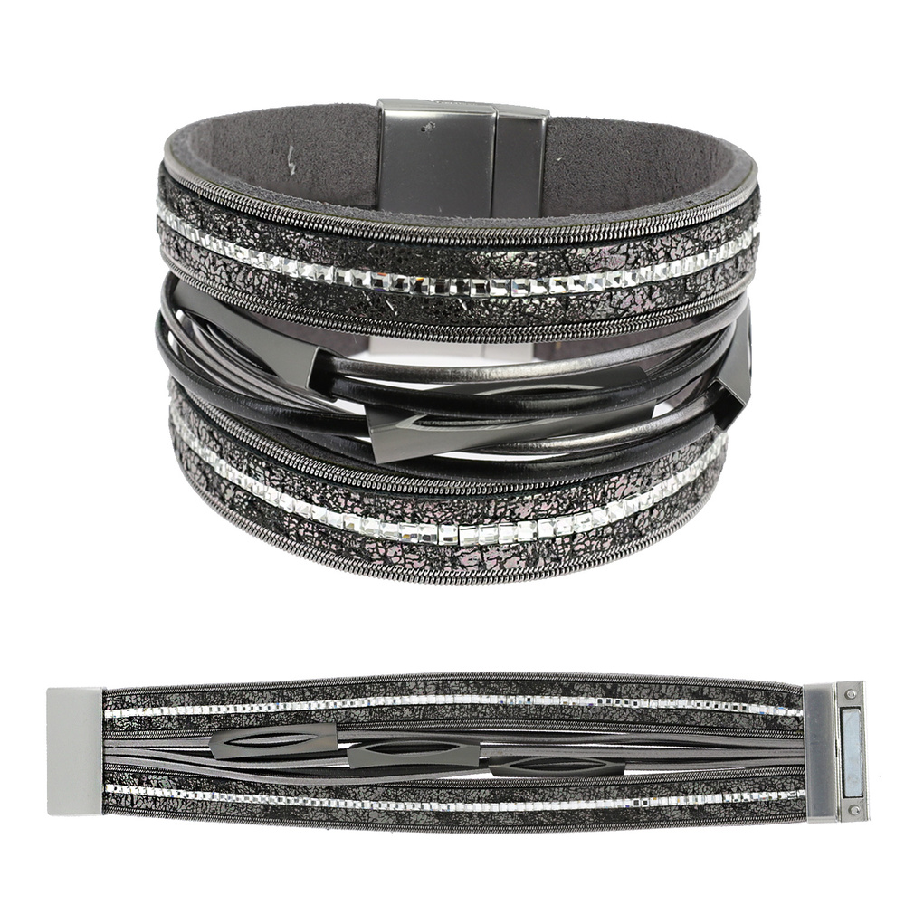 Bohemian Faux Leather Multi-strand Crystal Rhinestone Cord Bracelet With Magnetic Closure