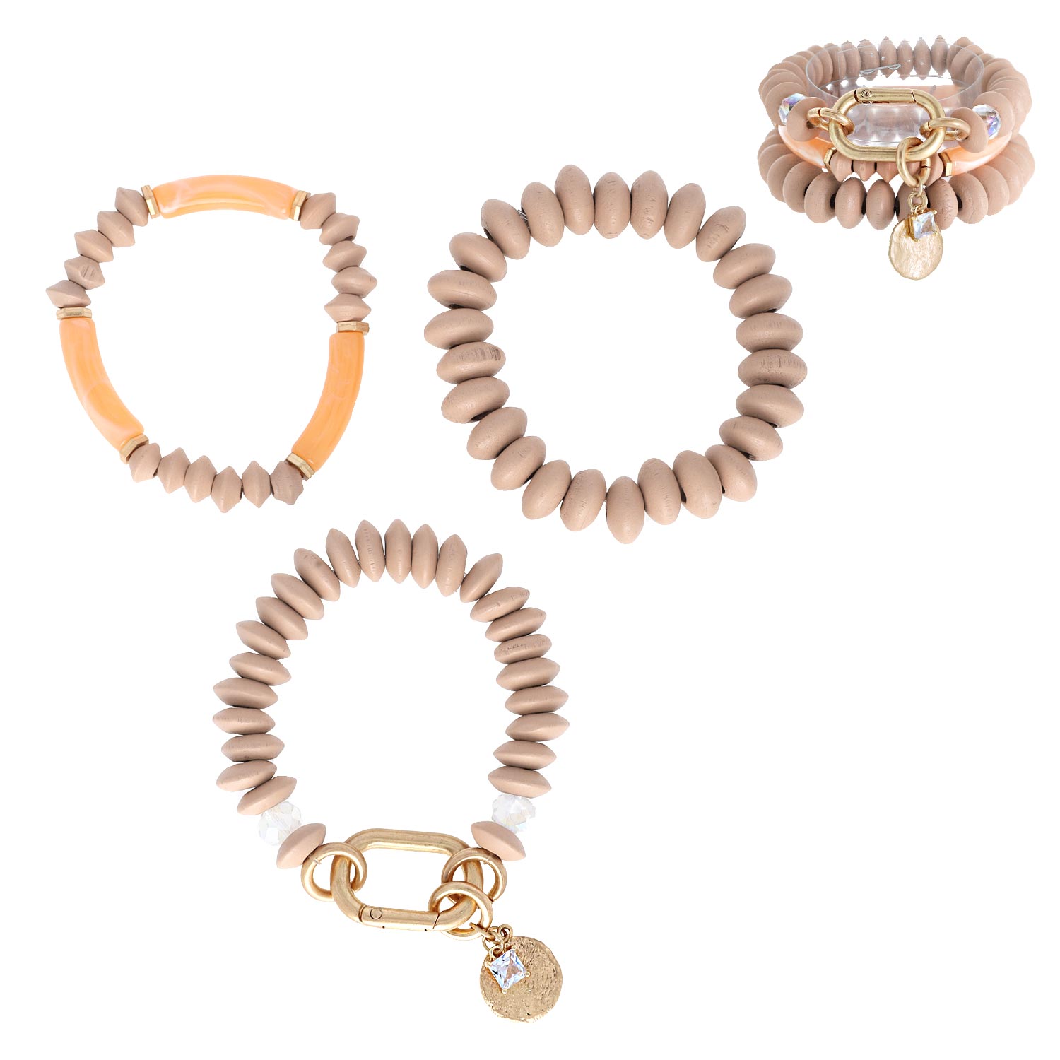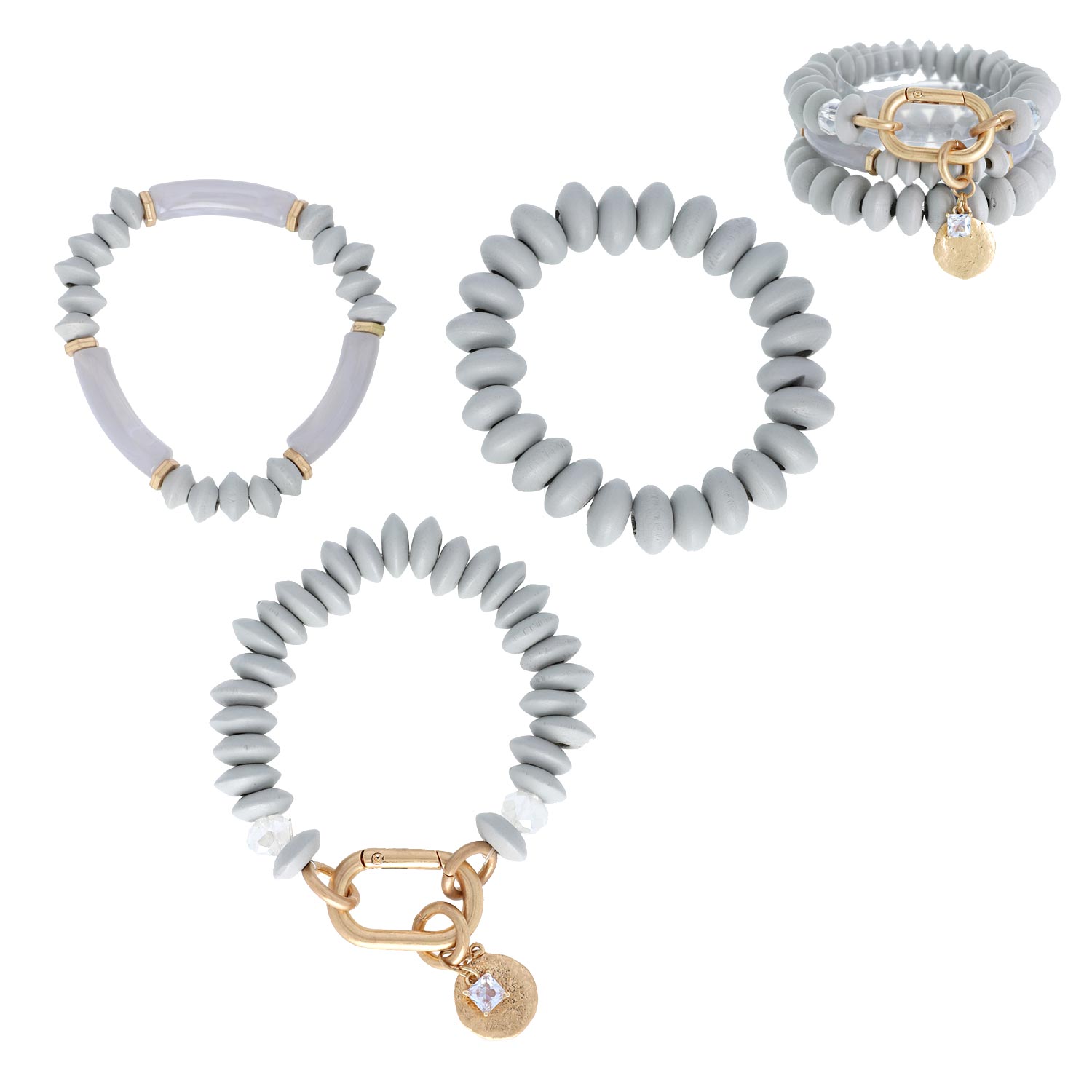 3-piece Assorted Two Tone Bead Mix Stackable Layered Bohemian Tube Bead Multi Charm Stretch Bracelet Set