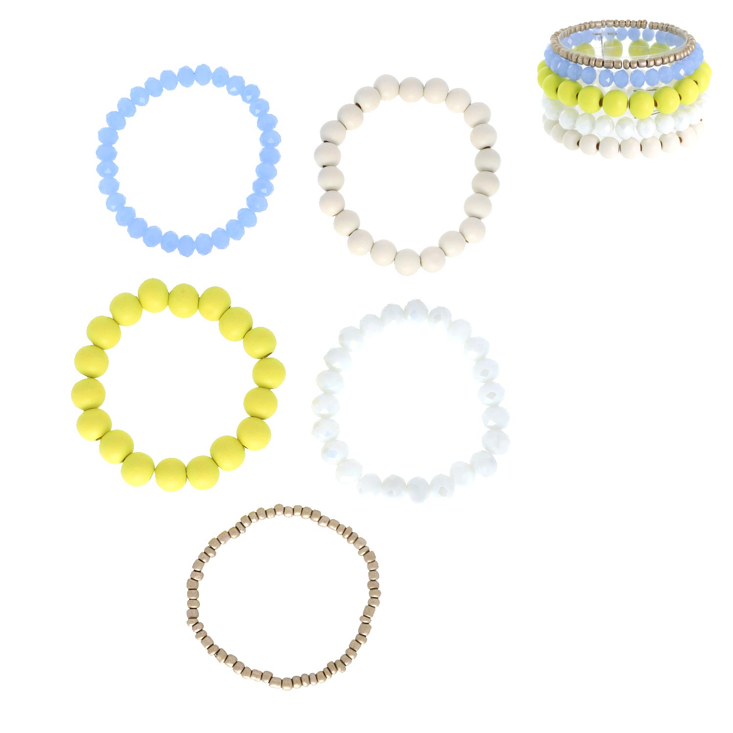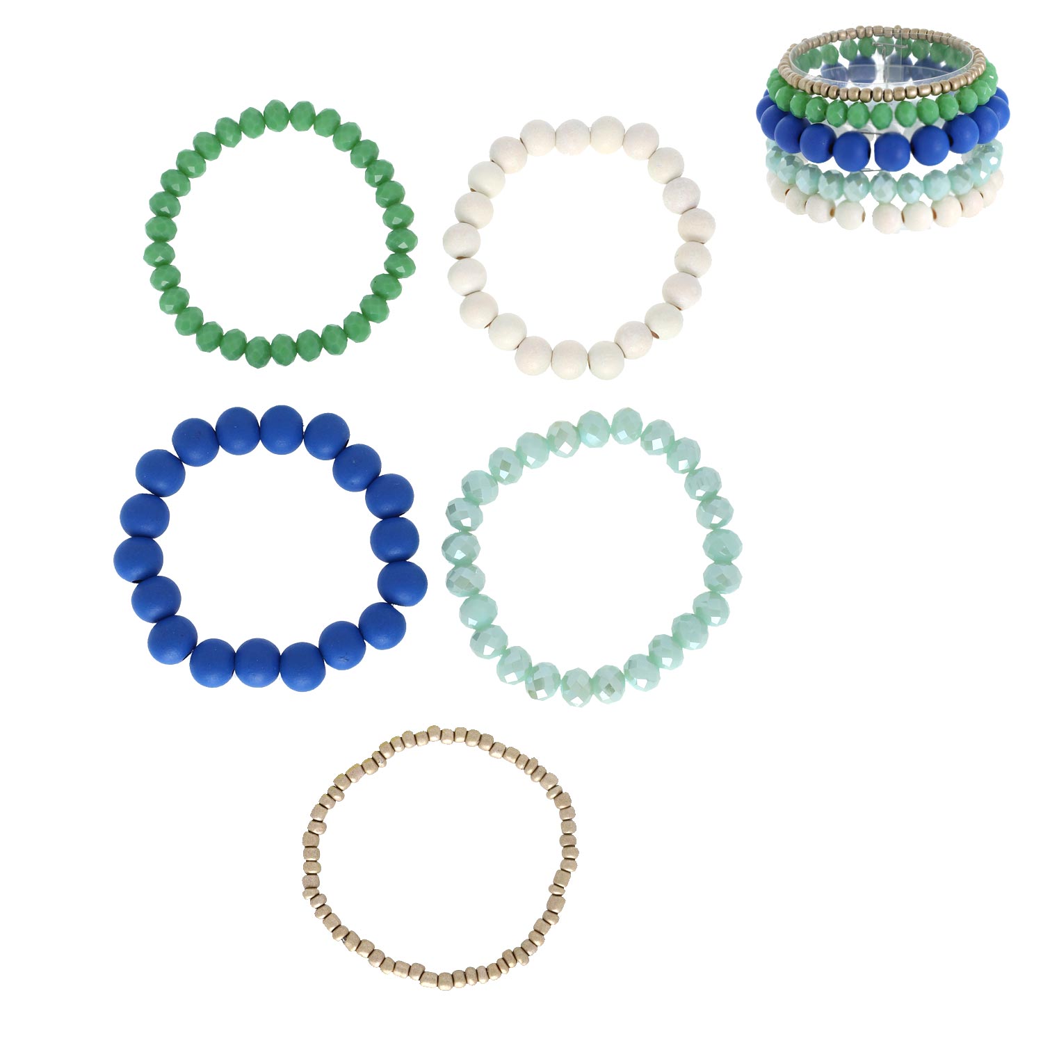 5-piece Bead Mix Stackable Layered Bohemian Stretch Bracelet Set