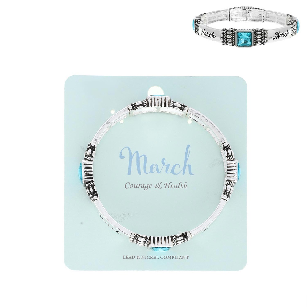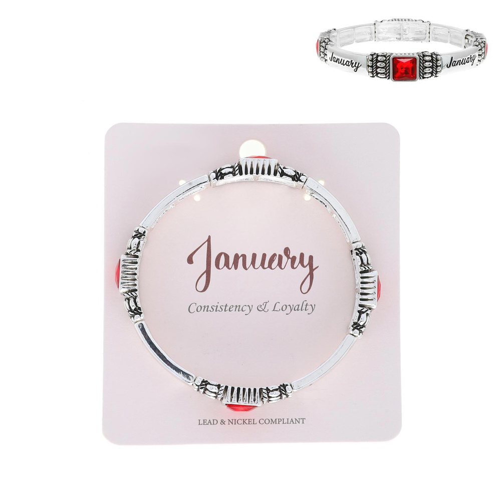 PERSONALIZED AFFIRMATION CRYSTAL RHINESTONE BIRTHSTONE STRETCH BANGLE BRACELET IN OXIDIZED SILVER TONE METAL