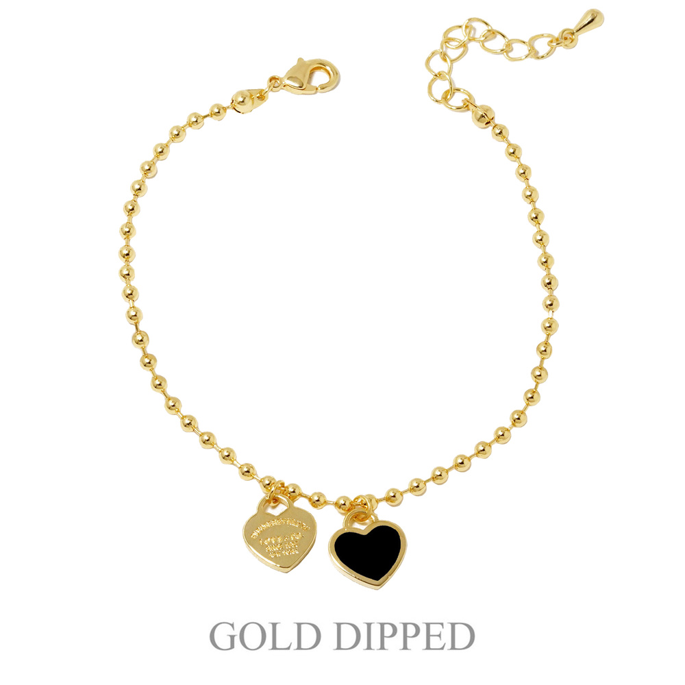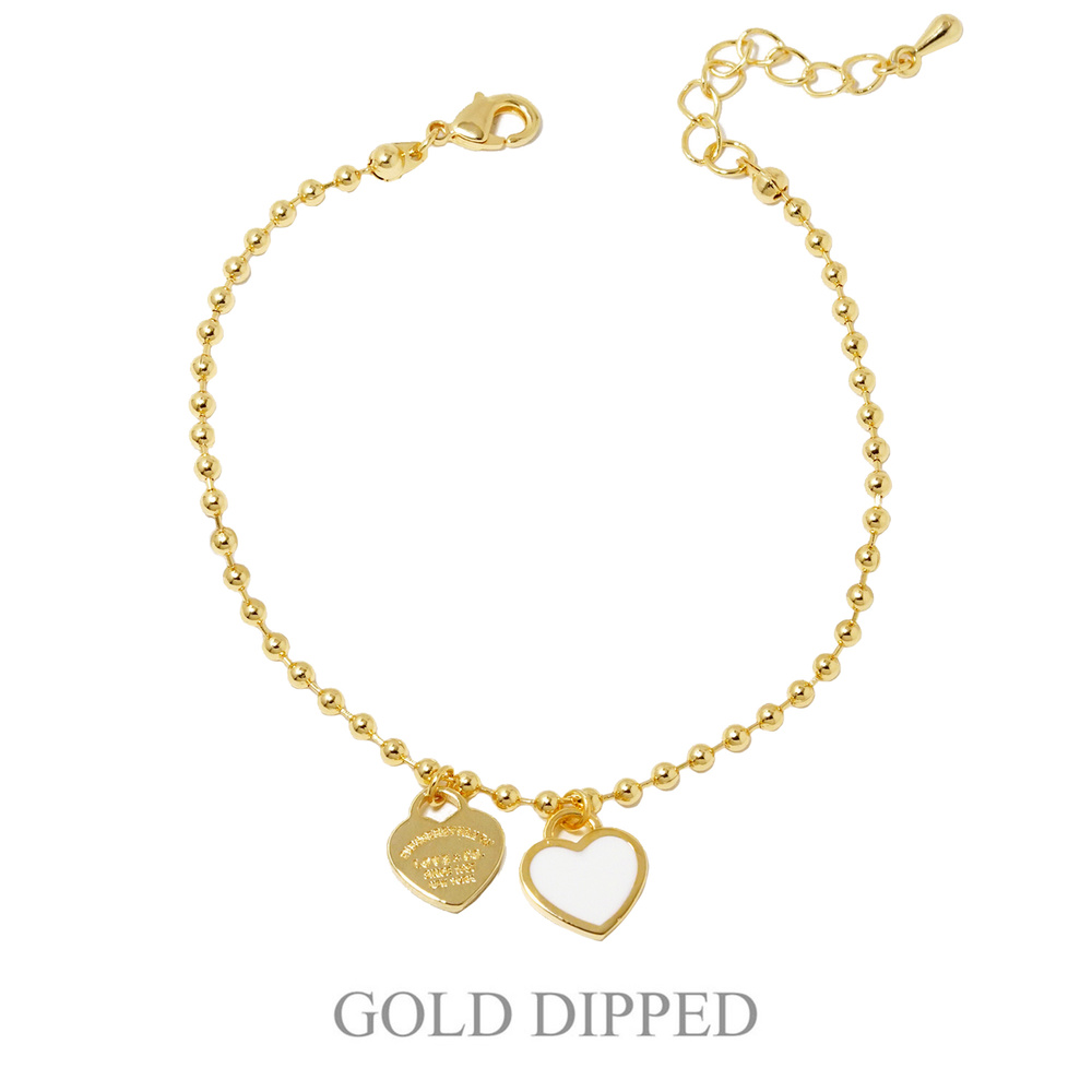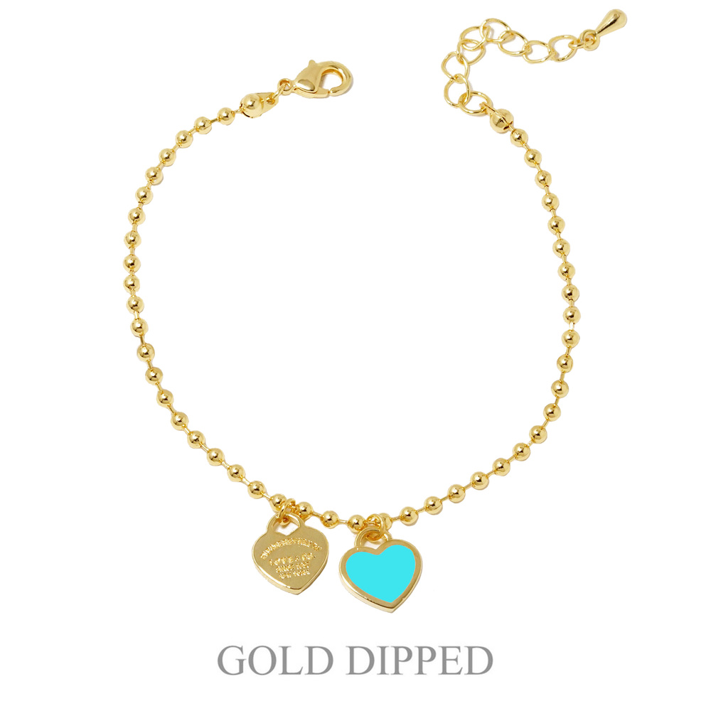 COLORED EPOXY FILLED DOUBLE HEART CHARM BALL CHAIN BRACELET
