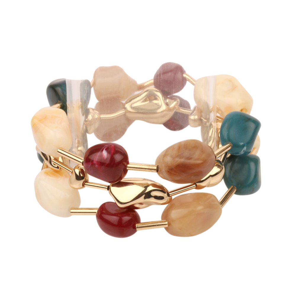 MULTI STONE STACKABLE STRETCH BRACELET SET IN GOLD TONE METAL