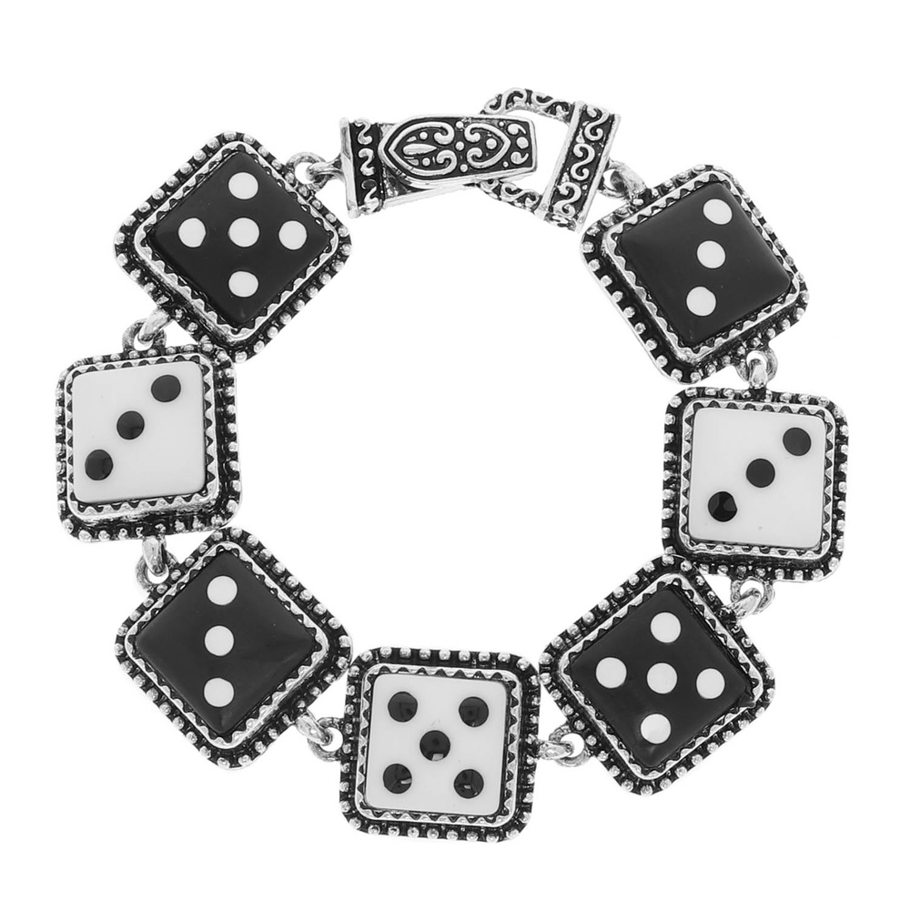 WESTERN BLACK AND WHITE ENAMEL DICE MAGNETIC BRACELET