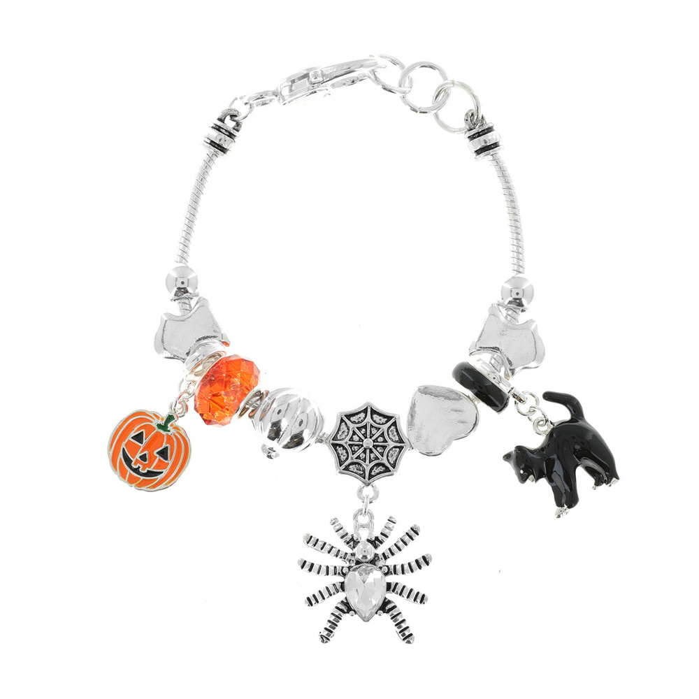 Halloween Jack O Lantern Pumpkin, Spider, Black Cat Charm Bracelet