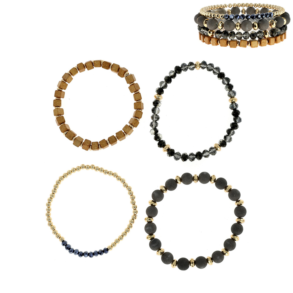SET OF 4 NATURAL STONE LOOK GLASS BEAD STACKABLE STRETCH BRACELETS - BOHEMIAN BOHO JEWELRY