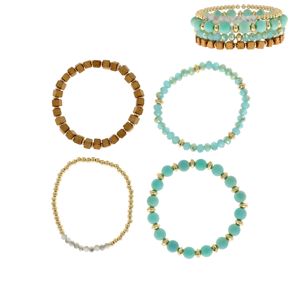Set Of 4 Natural Stone Look Glass Bead Stackable Stretch Bracelets - Bohemian Boho Jewelry
