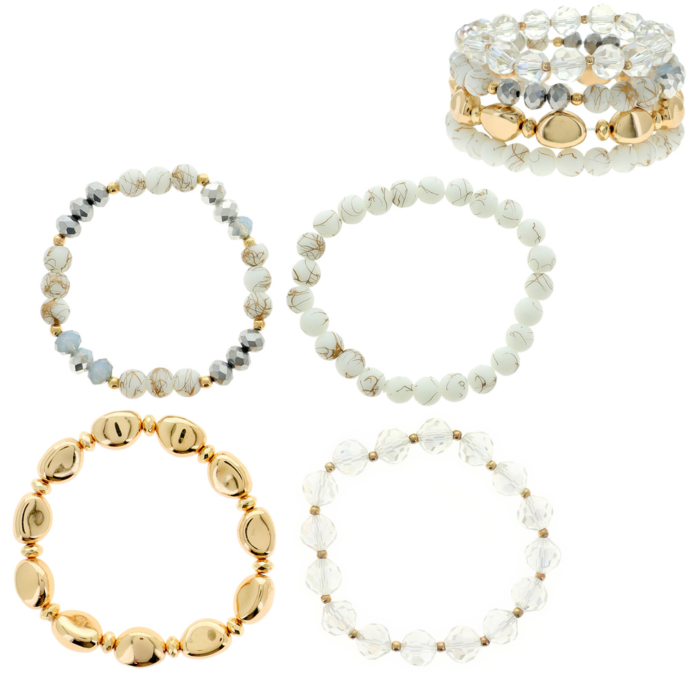 Boho 4 Set Bead Mix Multicolor Stretch Stackable Layering Bracelets