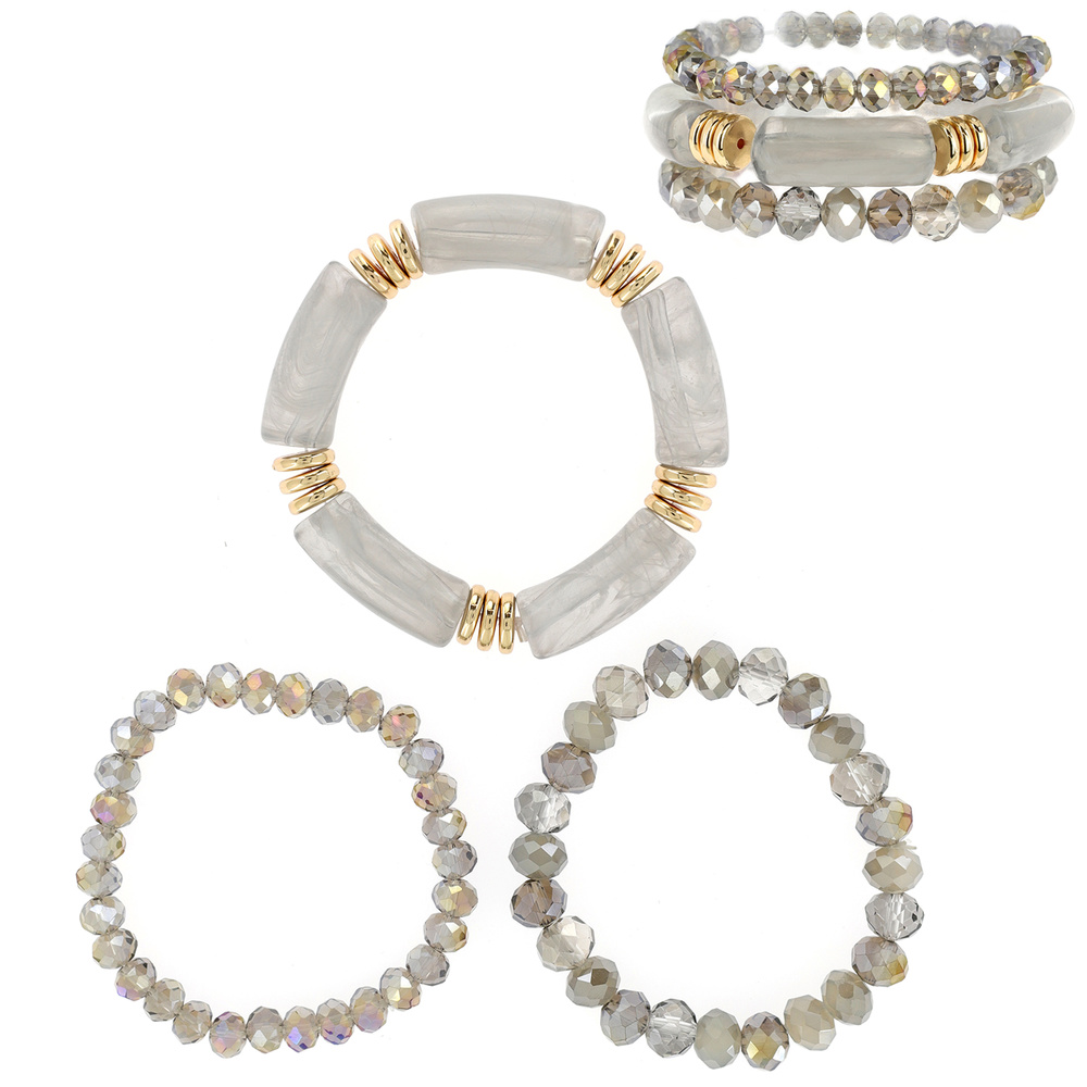 3-piece Set-bamboo Tube Assorted Acrylic Bohemian Beaded Stretch Stackable Layering Bracelets