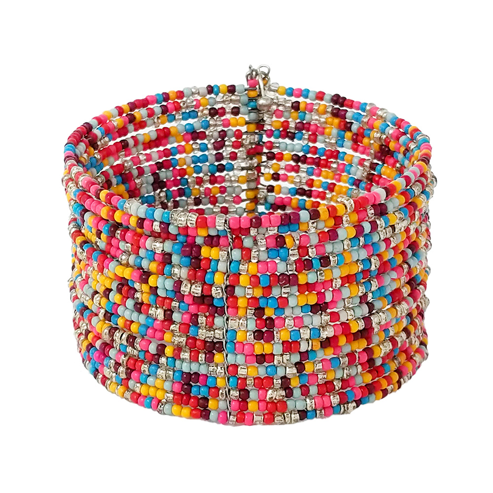 Multicolor Seed Bead Wide Beaded Cuff Bracelet - Bohemian Ethnic Jewelry