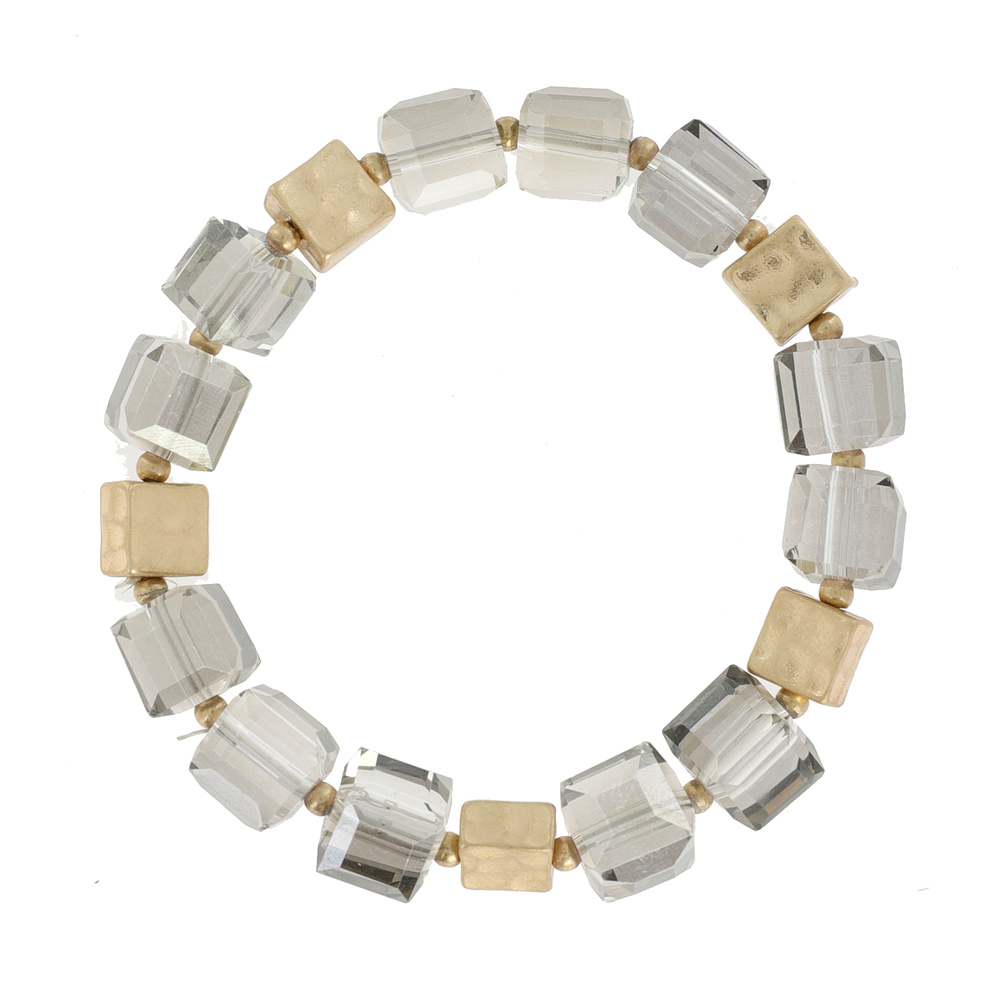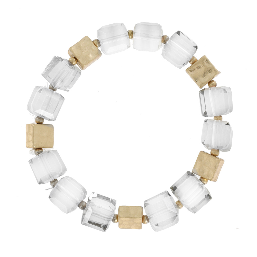GOLD AND ACRYLIC TWO TONE QUARTZ CUBE STRETCH BRACELET