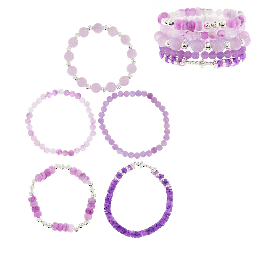 Boho 5-piece Stackable Multi Bead Beaded Stretch Bracelet Set