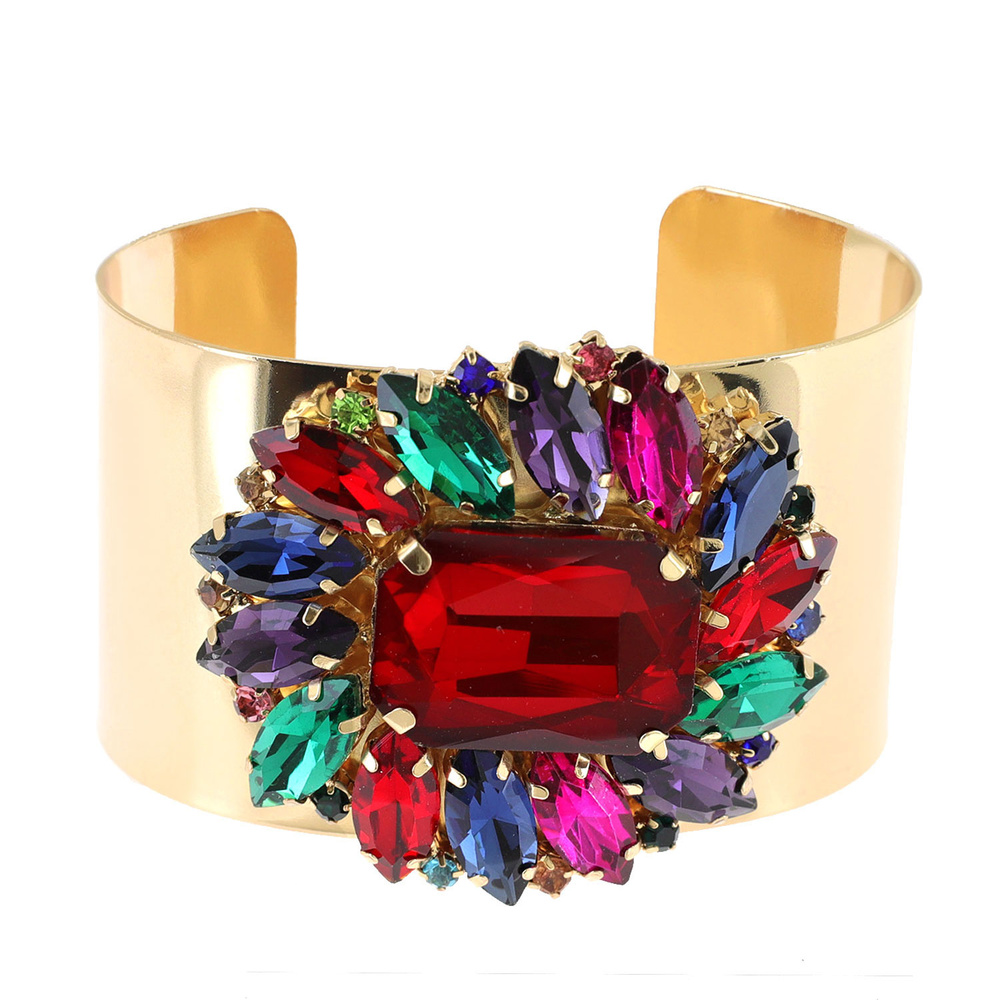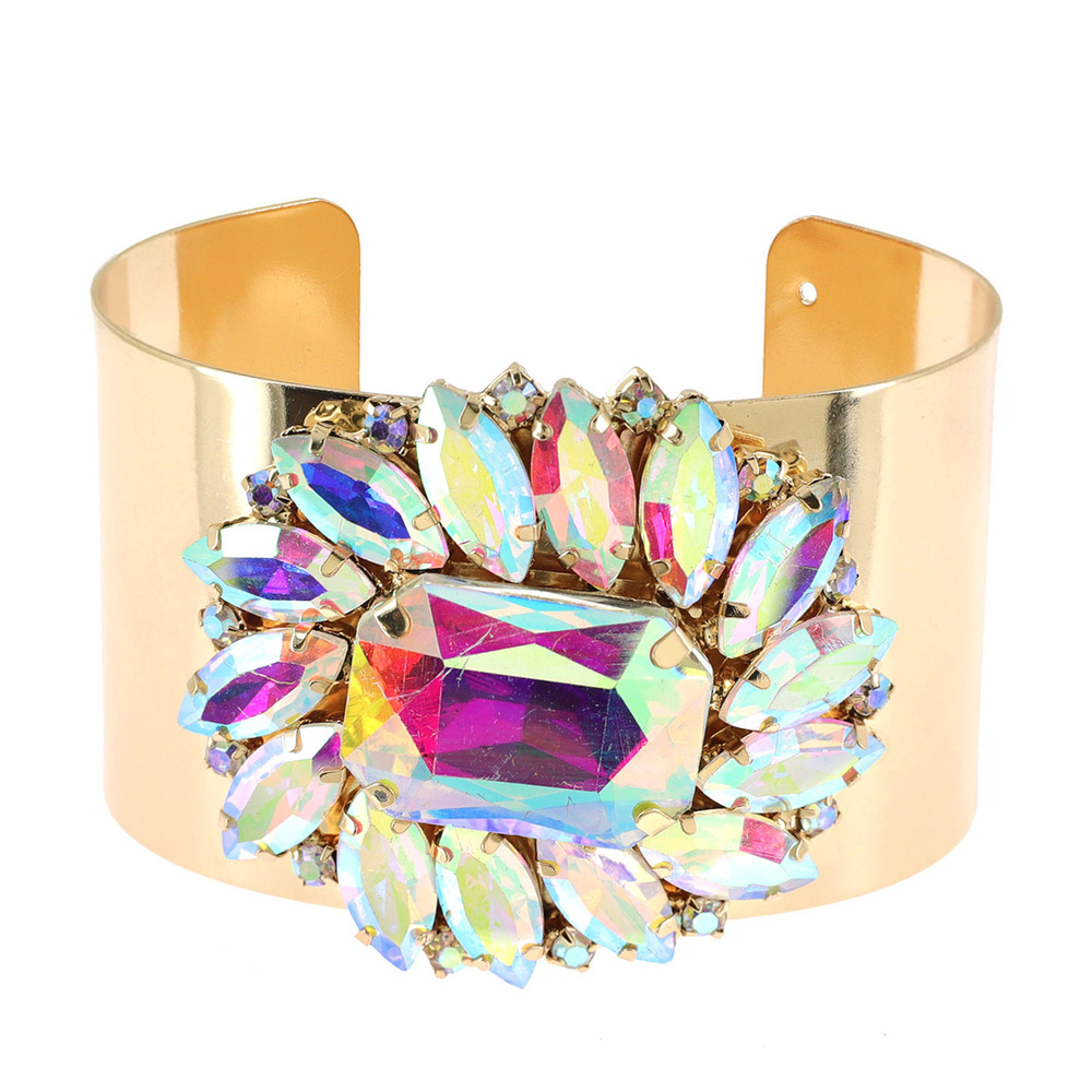 FLORAL CRYSTAL FACETED CUFF BRACELET