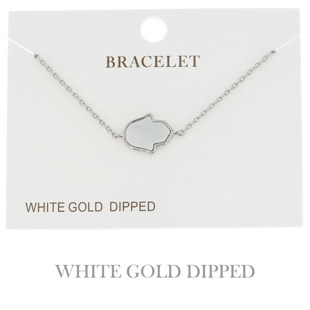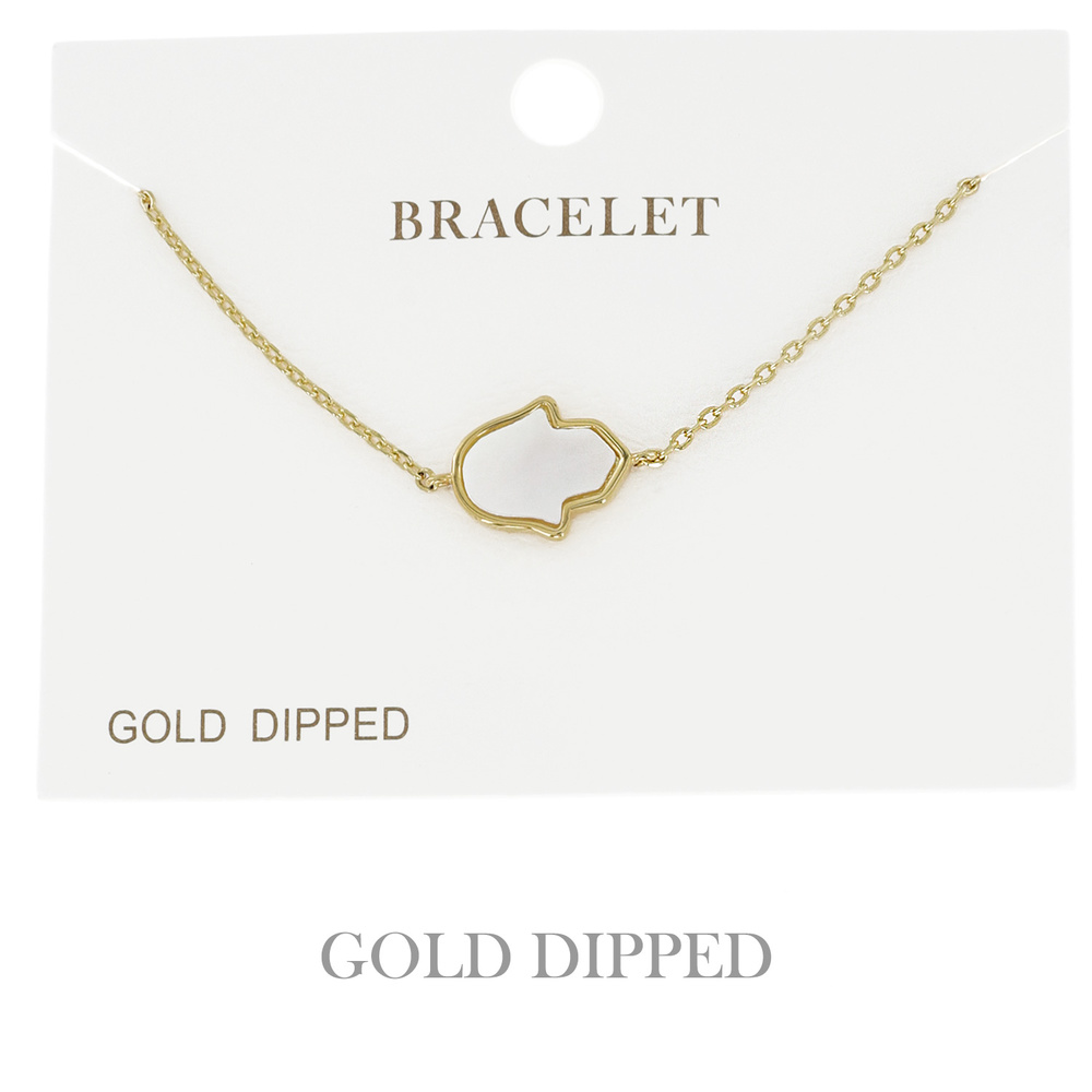 SYNTHETIC MOTHER OF PEARL HAMSA ADJUSTABLE BRACELET IN YELLOW GOLD AND WHITE GOLD PLATING