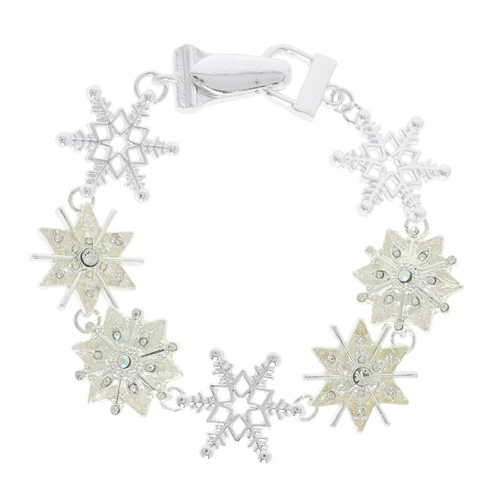 CHRISTMAS THEME ENAMEL LINK CASTED SNOWFLAKE CHARM BRACELET WITH MAGNETIC CLASP