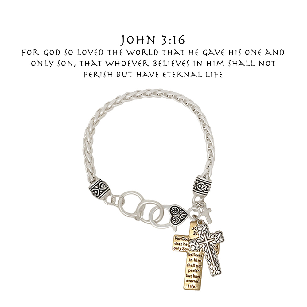 Celtic Style Christian Prayer Bible Verse John 3:16 Charm Bracelet