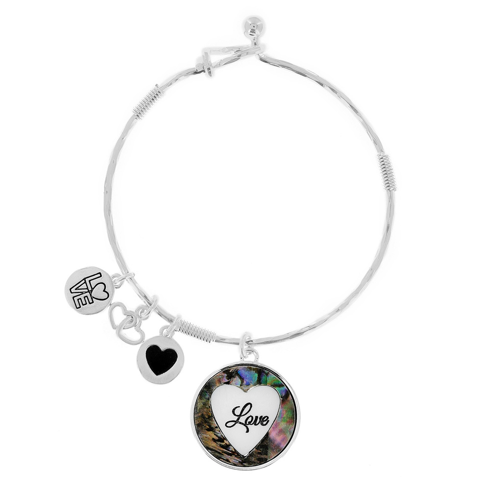 "LOVE" ABALONE SHELL PENDANT WIRE BANGLE BRACELET