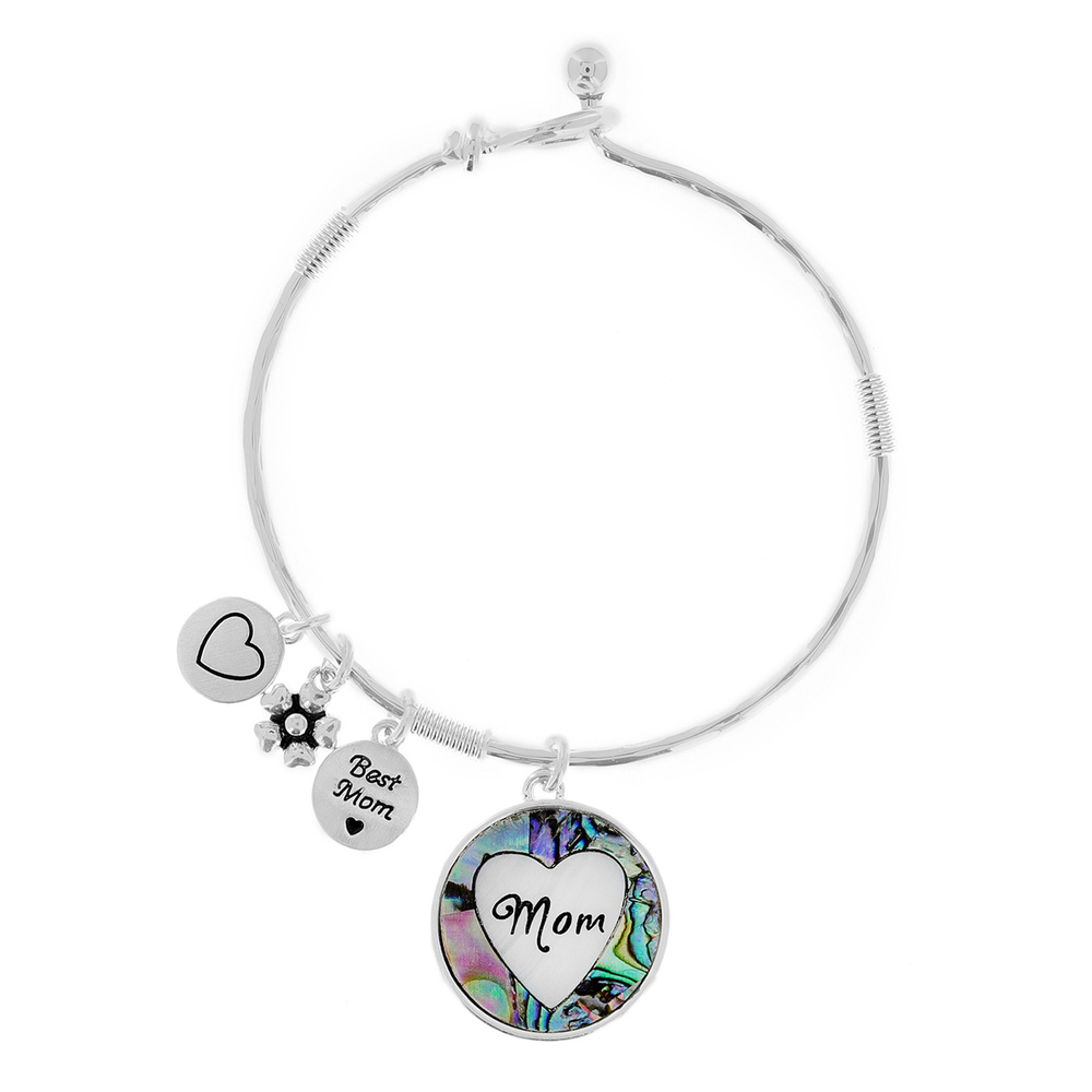 "best Mom" Abalone Shell Pendant Wire Bangle Bracelet