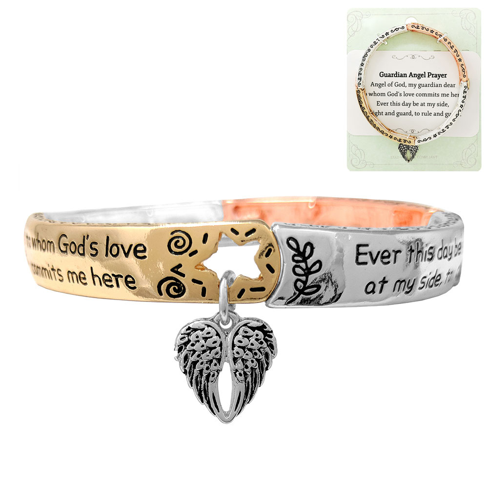 GUARDIAN ANGEL PRAYER SPIRITUAL MESSAGE STRETCH BANGLE BRACELET