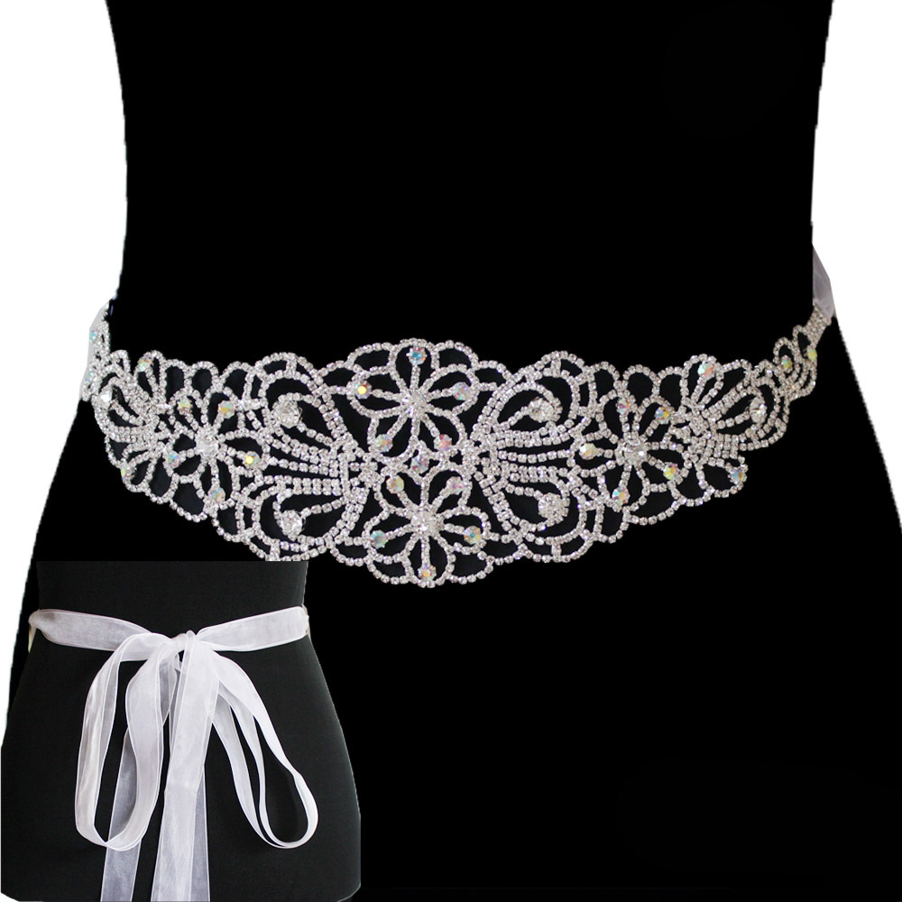 Extra Wide Rhinestone Wedding Tie Sash Belt