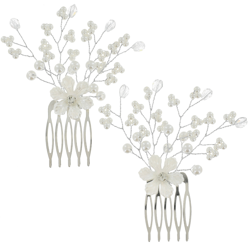 2-PIECE SET CRYSTAL AND PEARL FLORAL SIDE COMBS