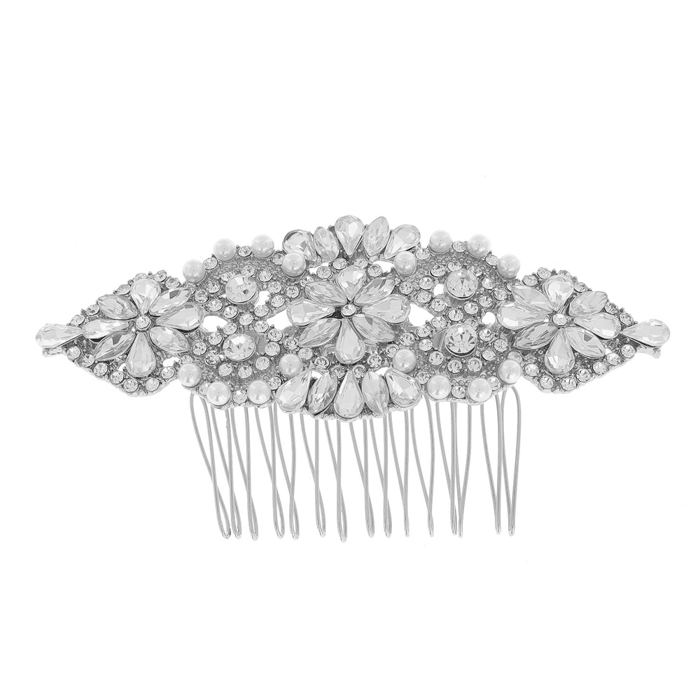 DAINTY RHINESTONE SIDE HAIR COMB W/GEMS AND PEARLS