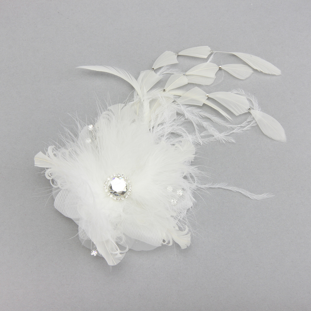 FEATHER FLOWER HAIR CLIP W/ STONES