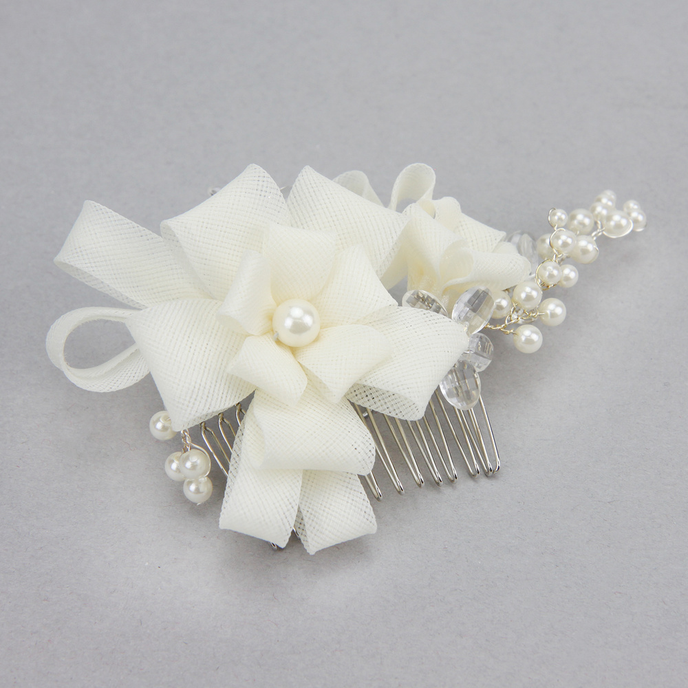 BRIDAL FLOWER HAIR COMB W/ PEARLS / RHINESTONES