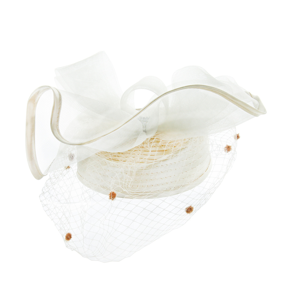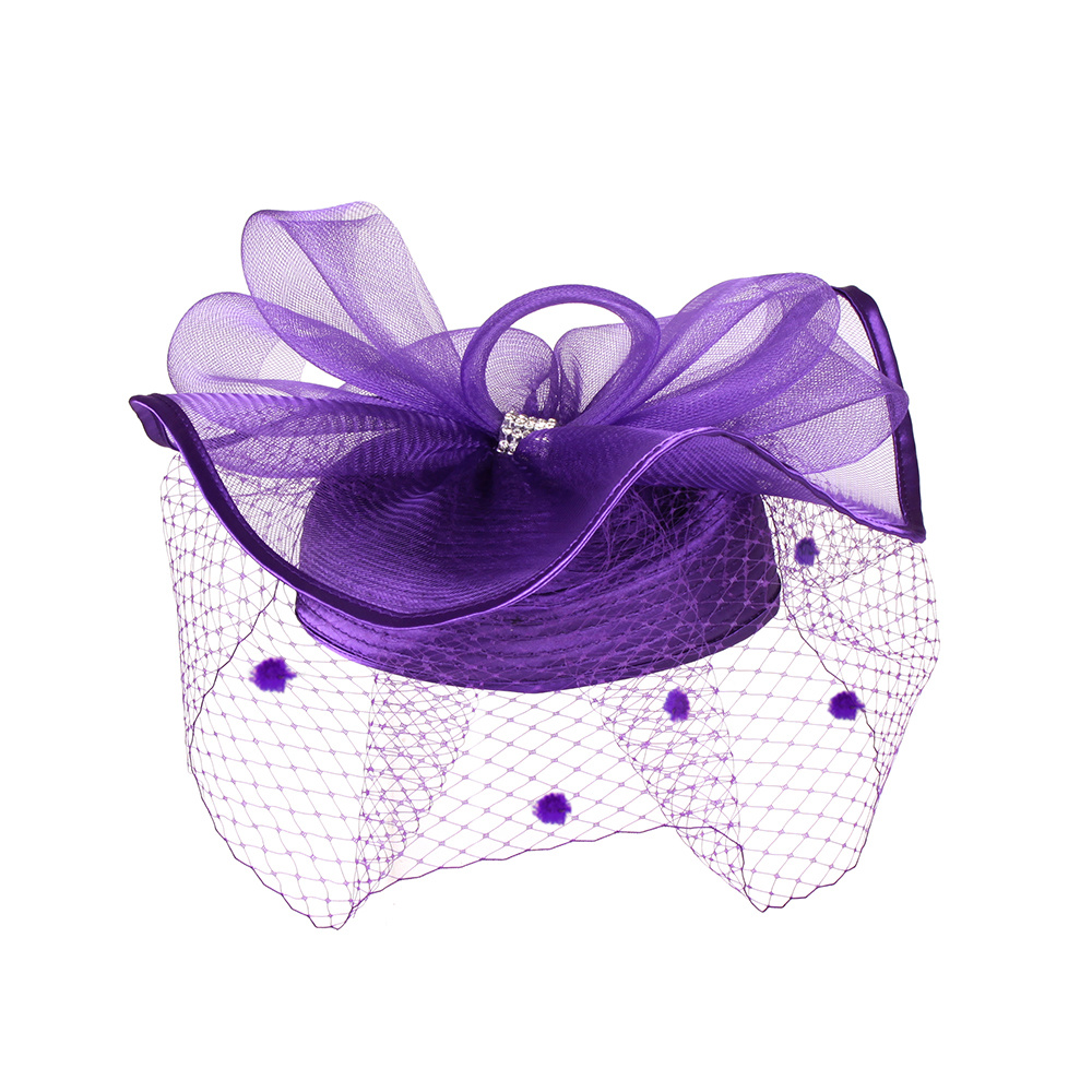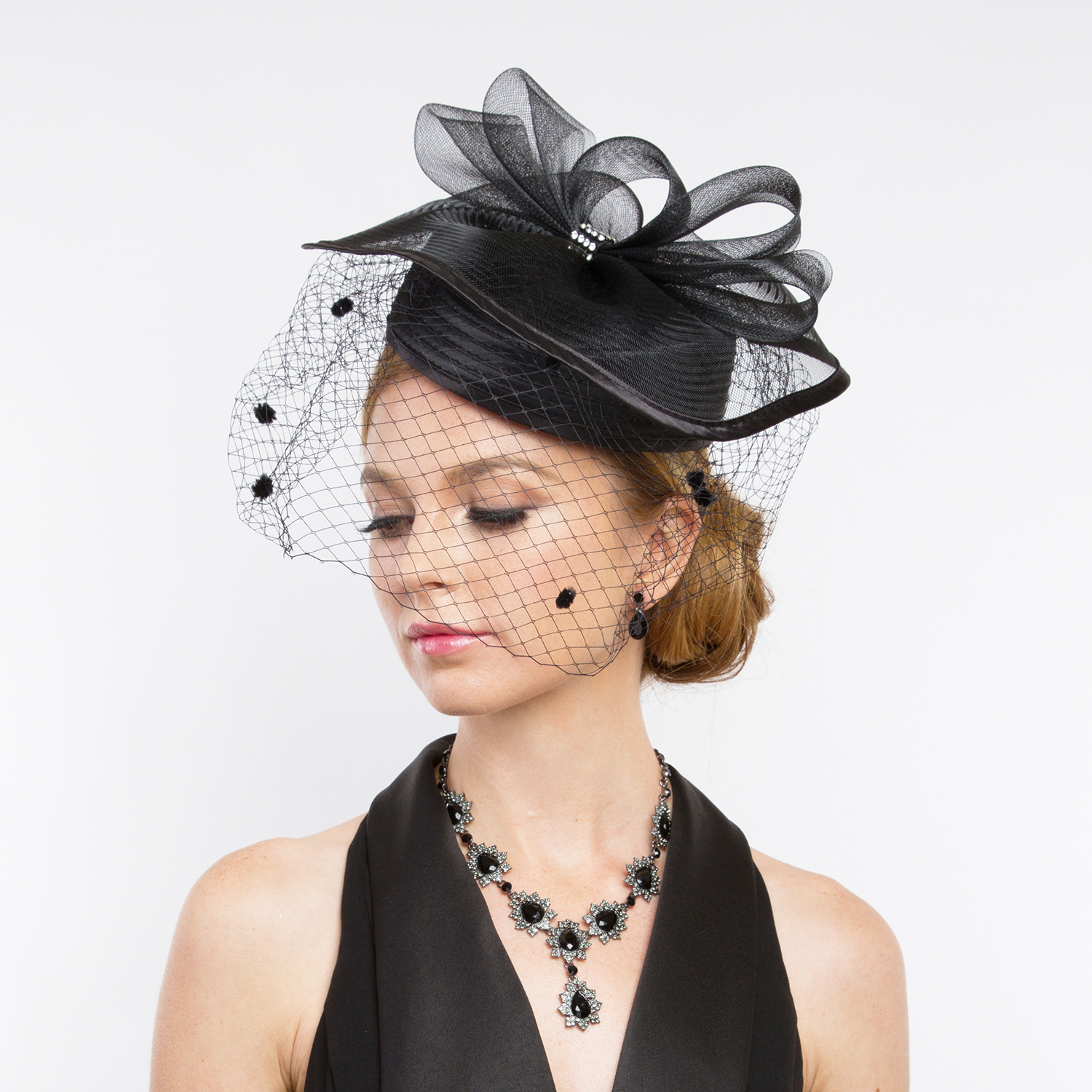 SATIN BRAID PILL BOX HAT W/ MESH BOW & NETTING VEIL