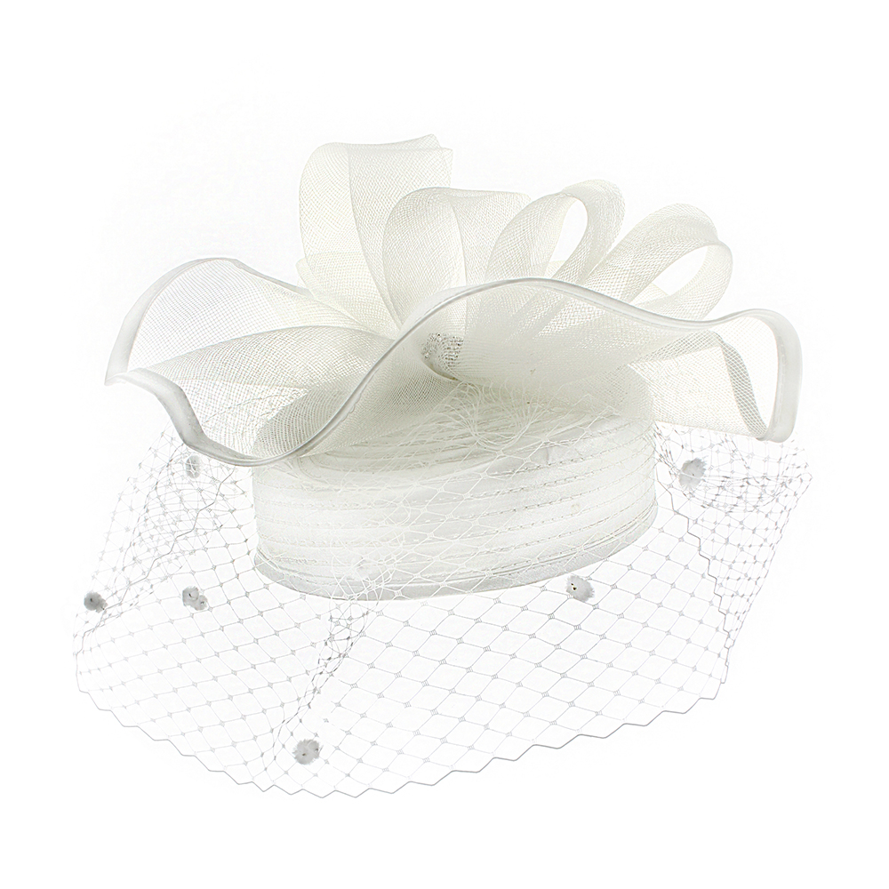 SATIN BRAID PILL BOX HAT W/ MESH BOW & NETTING