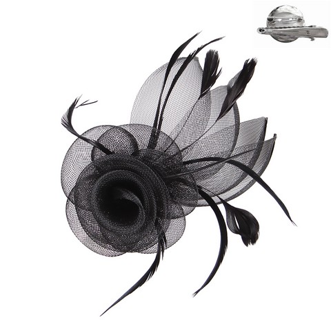 Mesh Flower and Leaves with Feathers Pin Brooch and Hair Clip Fascinator