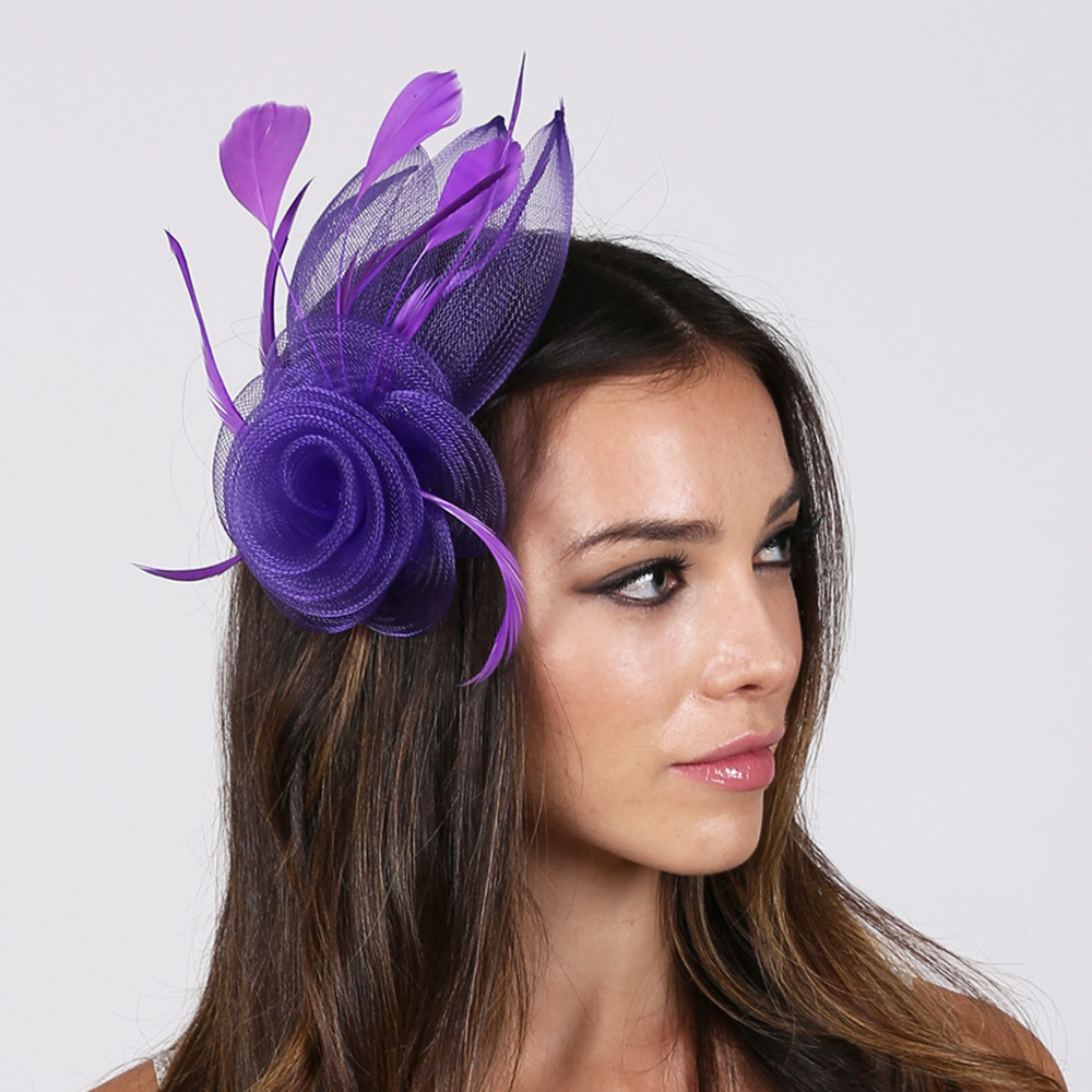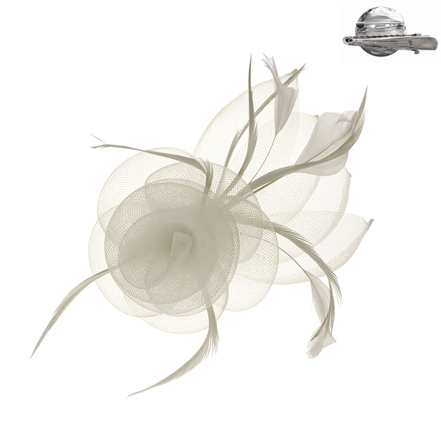 WHITE POPULAR DRESSY FASCINATOR WITH FLORAL CENTER