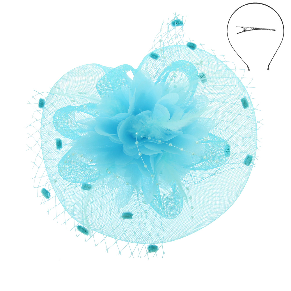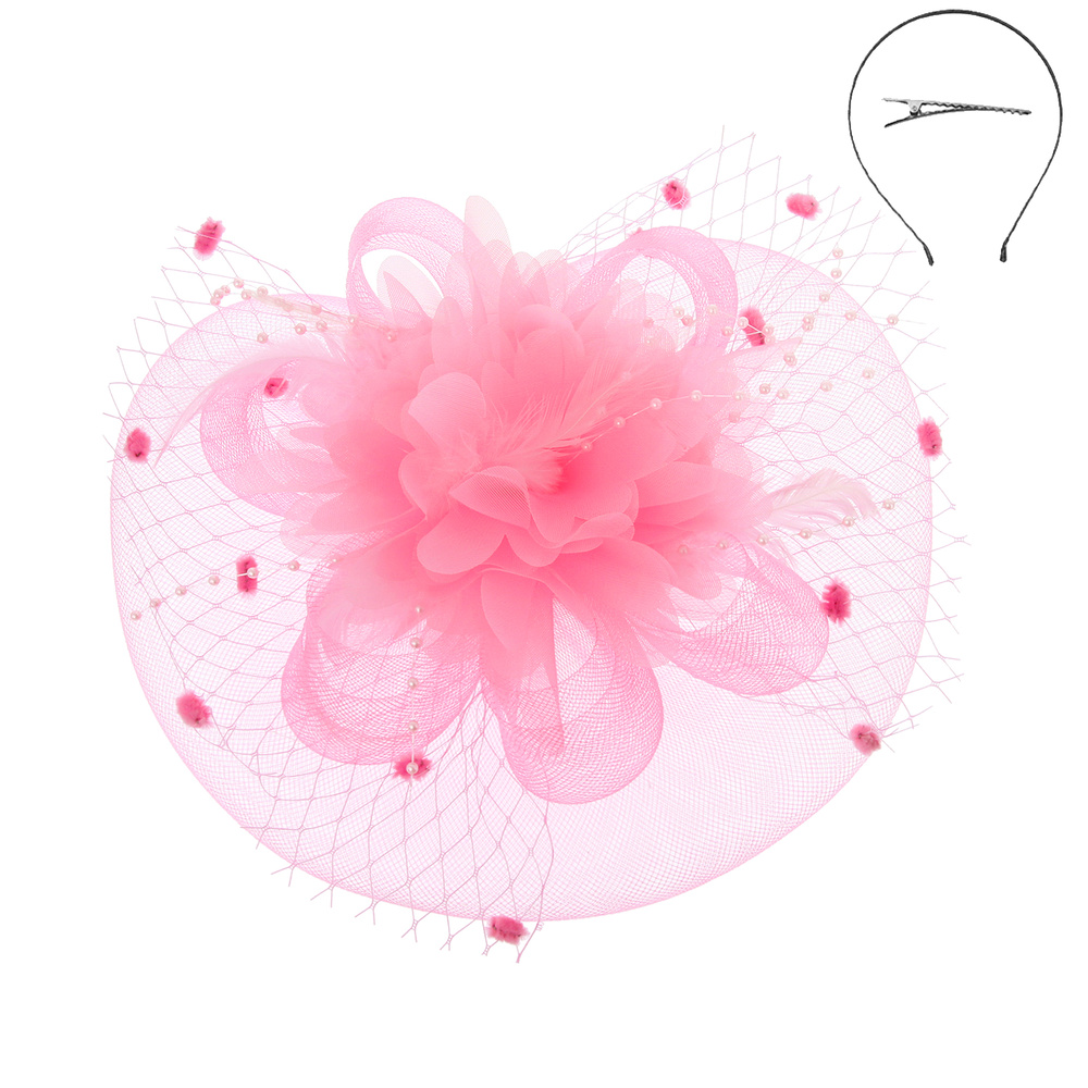 SATIN FLOWER MESH VEIL FASCINATOR DETACHABLE HEADBAND INCLUDES HEADBAND AND CLIP