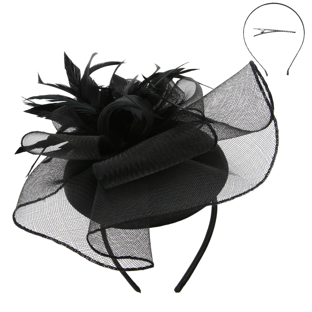 MESH FLORAL FEATHER CAP FASCINATOR DETACHABLE HEADBAND INCLUDES HEADBAND AND CLIP