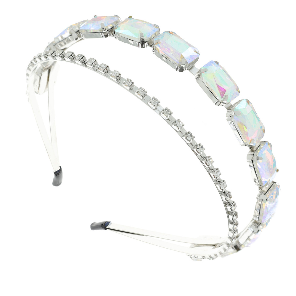 RHINESTONE AND SQUARE GEM STONE DOUBLE HEADBAND