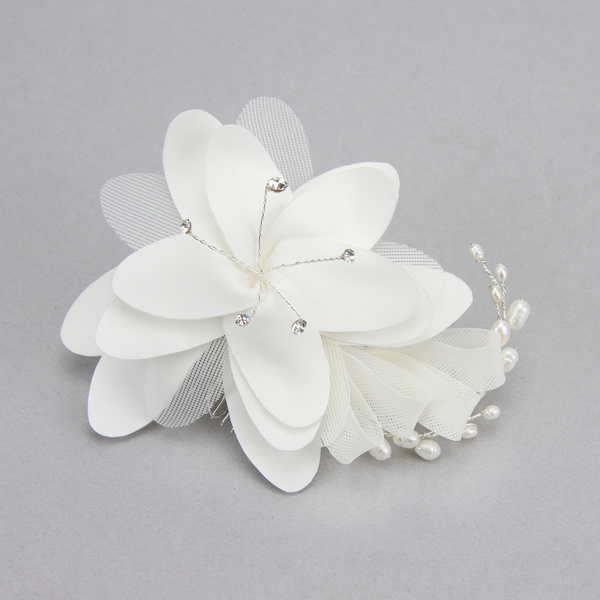 BRIDAL FLOWER HAIR COMB W/ PEARLS / RHINESTONES