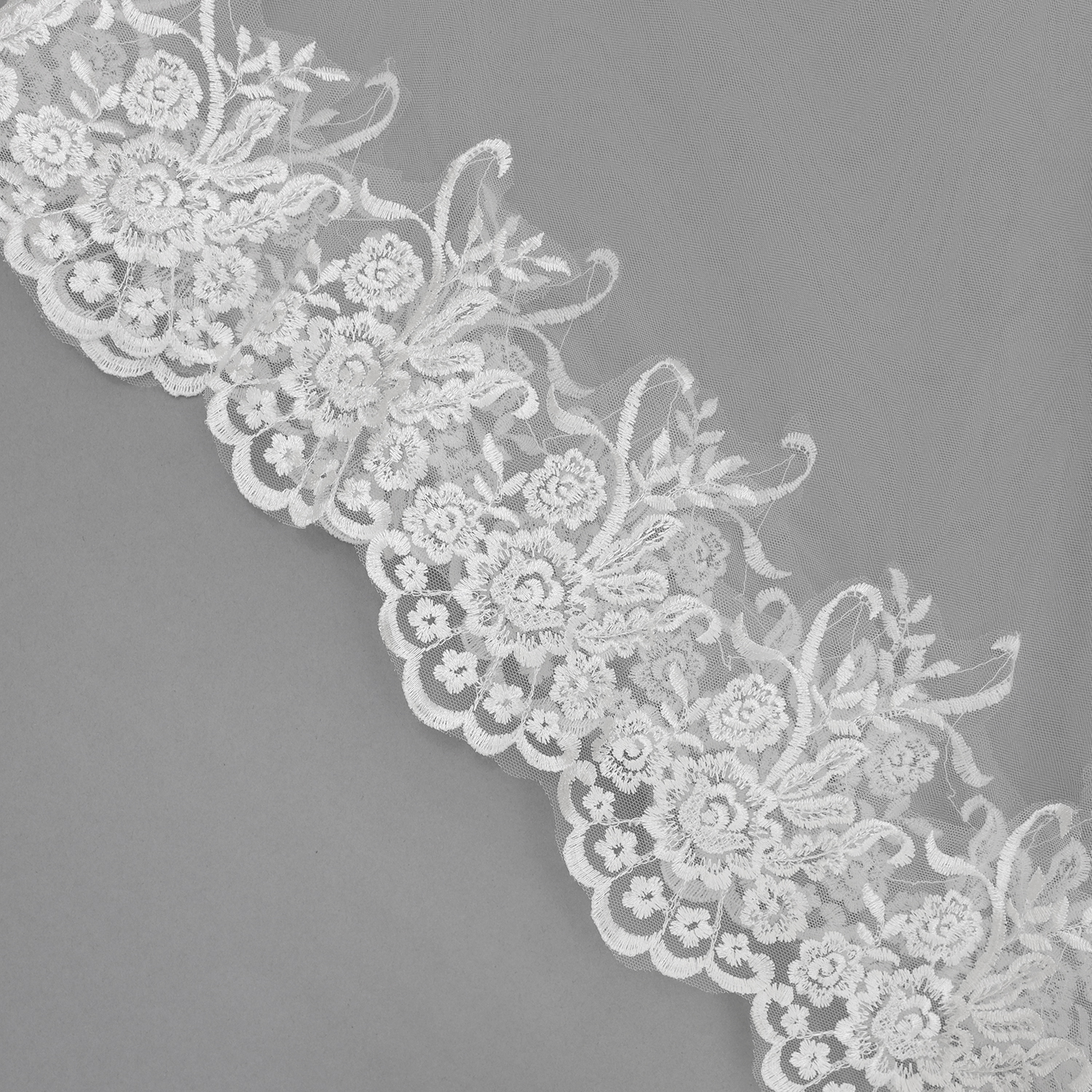 2 TIER CLASSY ELEGANT BRIDAL VEIL LACE FLORAL TRIM EDGE