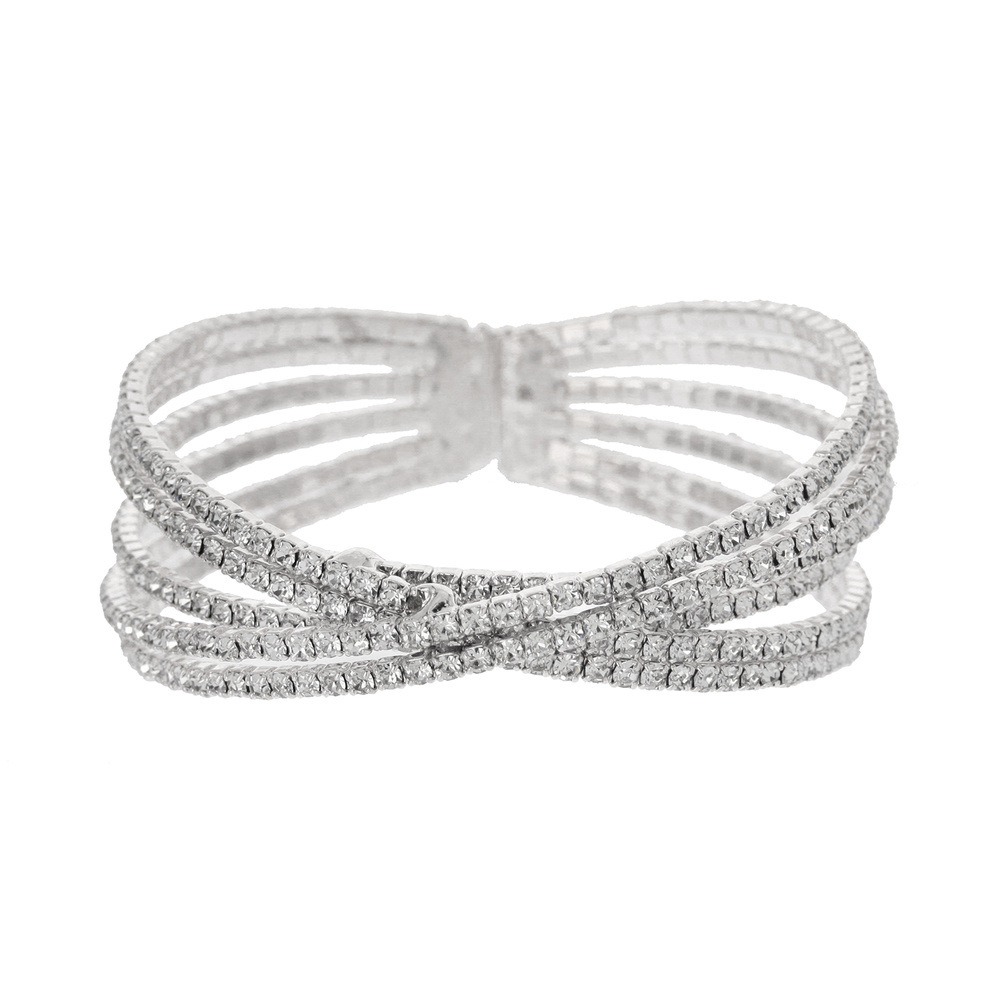 CRISS CROSS MEMORY WIRE RHINESTONE CUFF BR