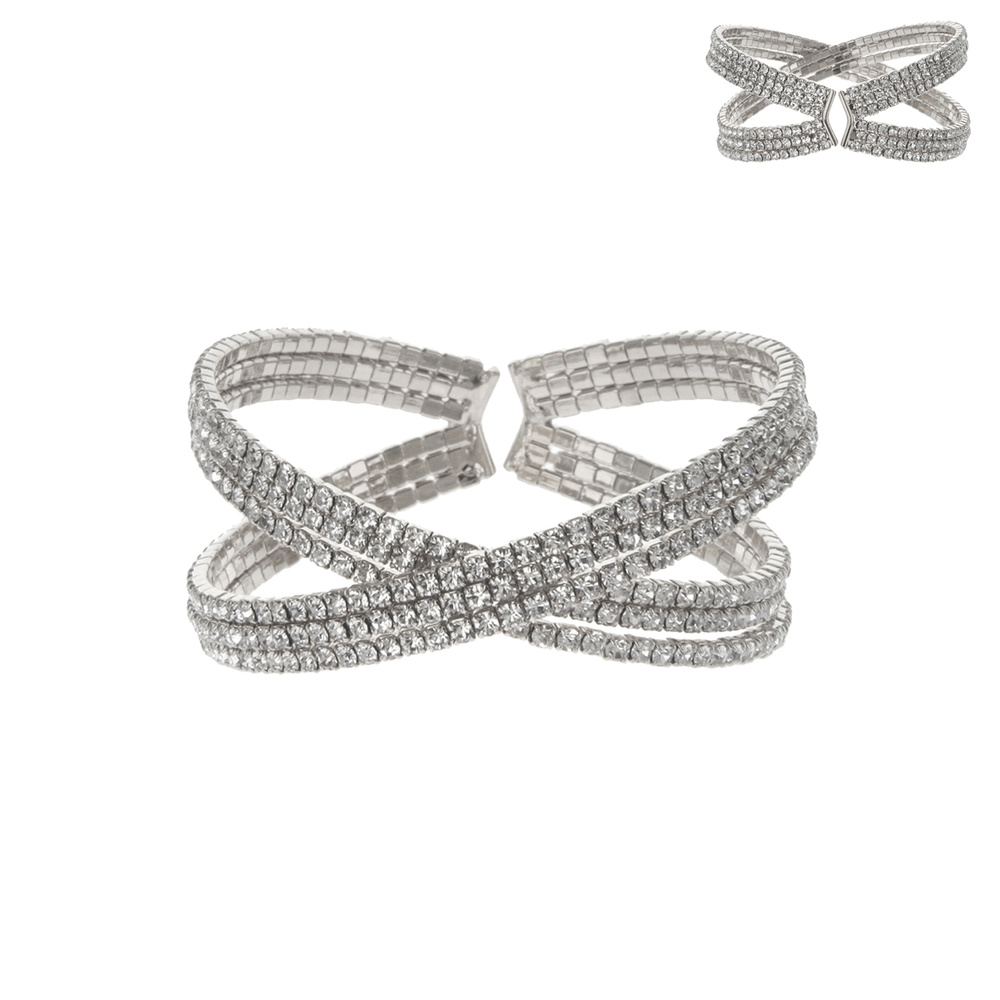 3 LAYER CROSSED BRACELET W/GEMS