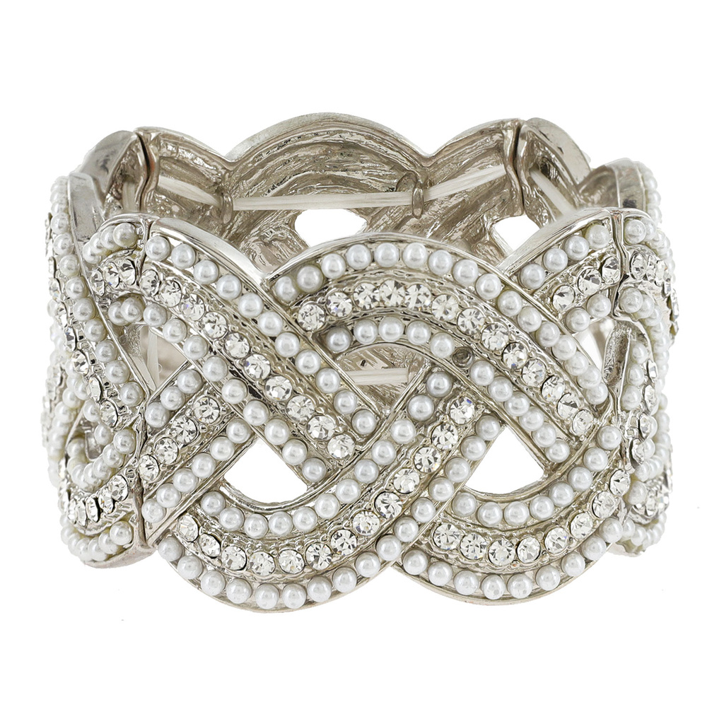 Double Row With Square Gems And Stones Stretch Bracelet Bq109Gcr